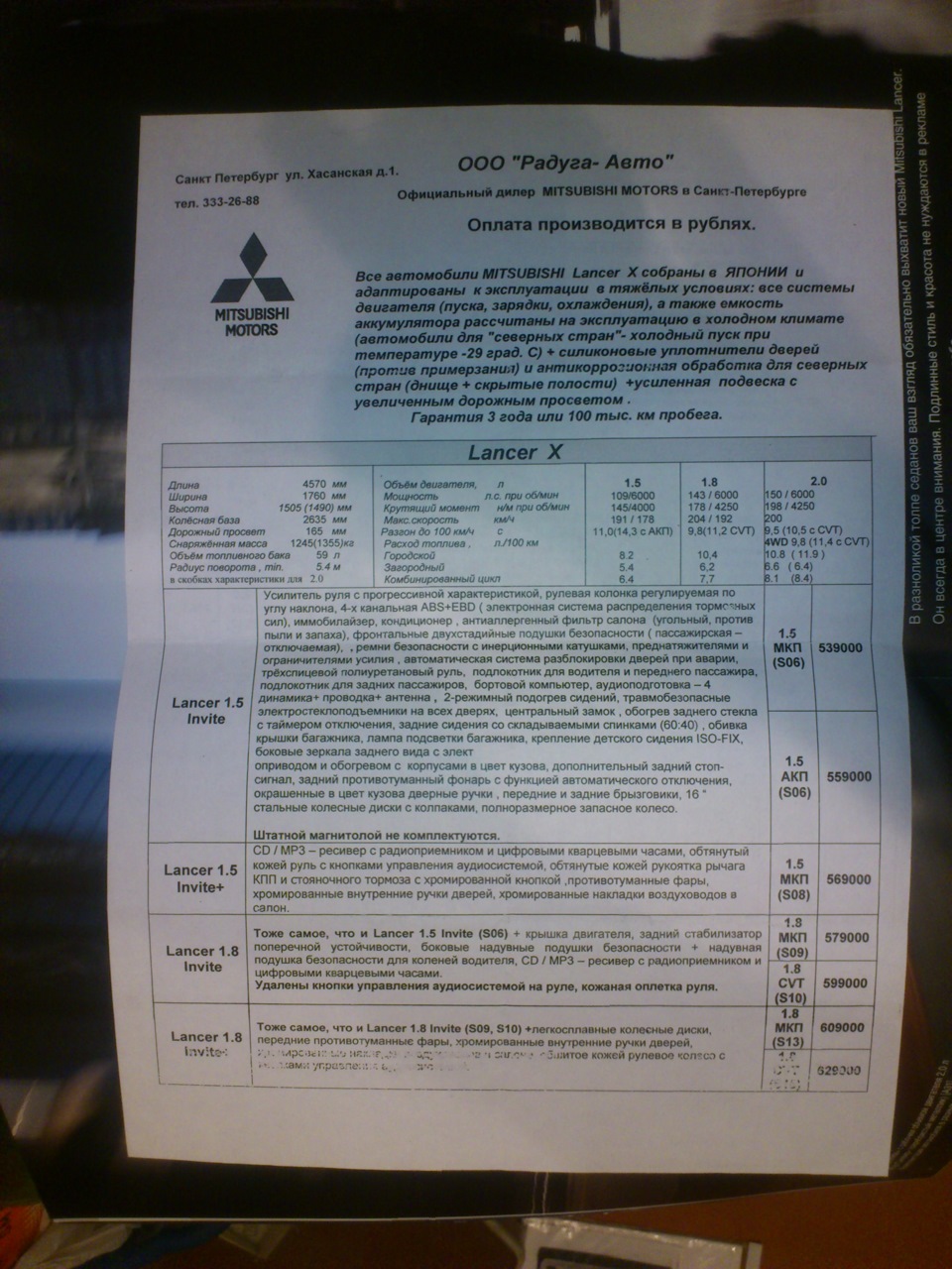 Вчера заезжал на свою старую квартиру и перебирая вещи, наткнулся на буклет, по которому я выбирал машину в 2009 году. Внутри лежал прайс с описанием комплектаций и цен на Лансер Х… Думаю многим будет интересно посмотреть.