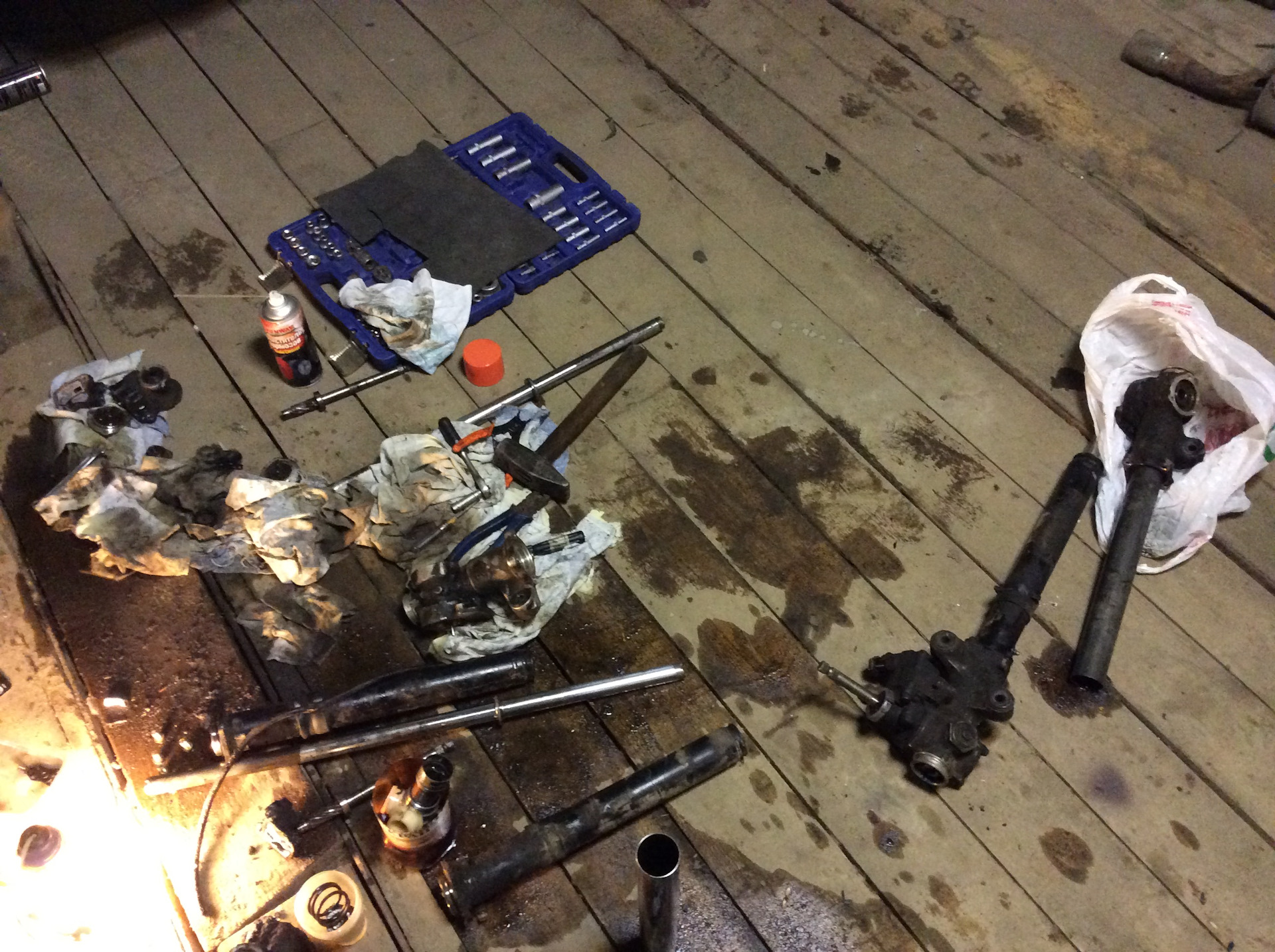 Вердикт был печален: либо искать другую рейку либо мы покупаем дорогостоящий ремкомплект, ещё часов 6-8 проводим под машиной и вуаля: шанс 50/50 что всё будет нормально, не будет каких-либо подводных камней, ведь рейку то мы не разбирали, естественно сославшись на добросовестность и осведомлённость ребят и Москвы.