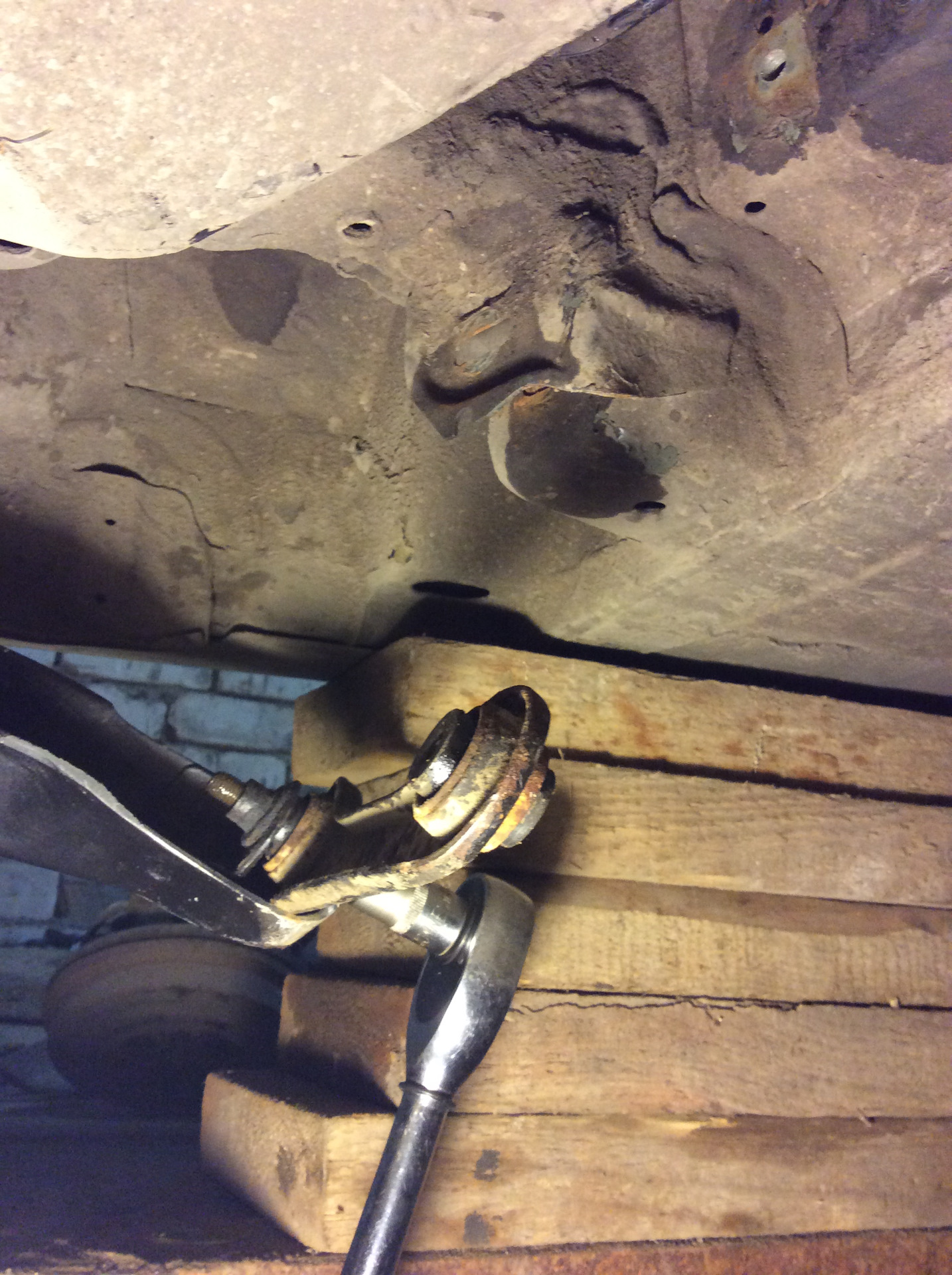 А дальше пошла пляска где мы поняли в какую жопу мы попали. Правый рычаг схождения не хотел отворачиваться, закладная гайка просто провернулась и ничего далее у нас не вышло.