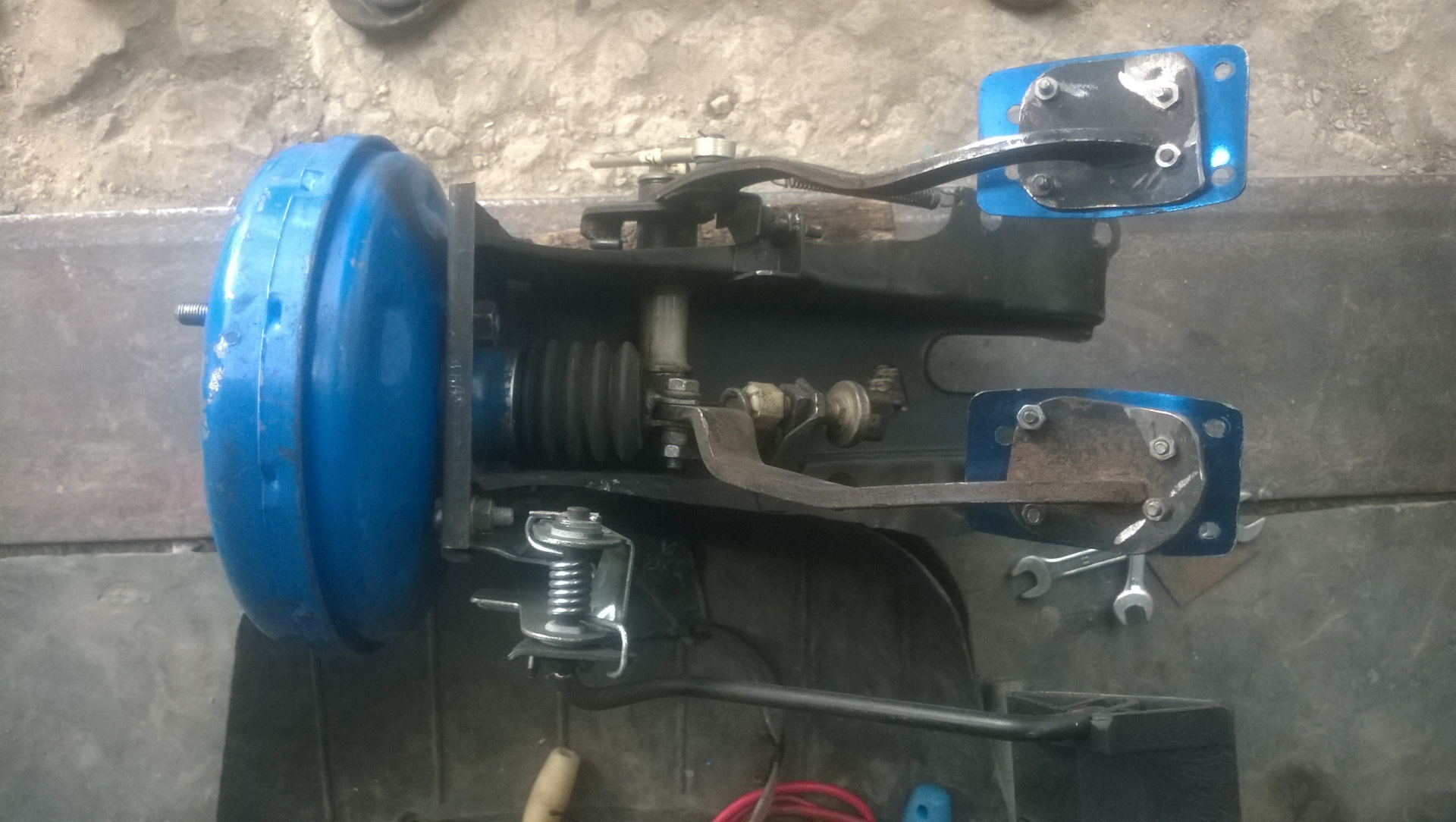 пришлось переделывать педальный узел, моторный щит, по заваривать лишние дырки а за одно и сделать нормальную выемку под клапан на вакуумнике.