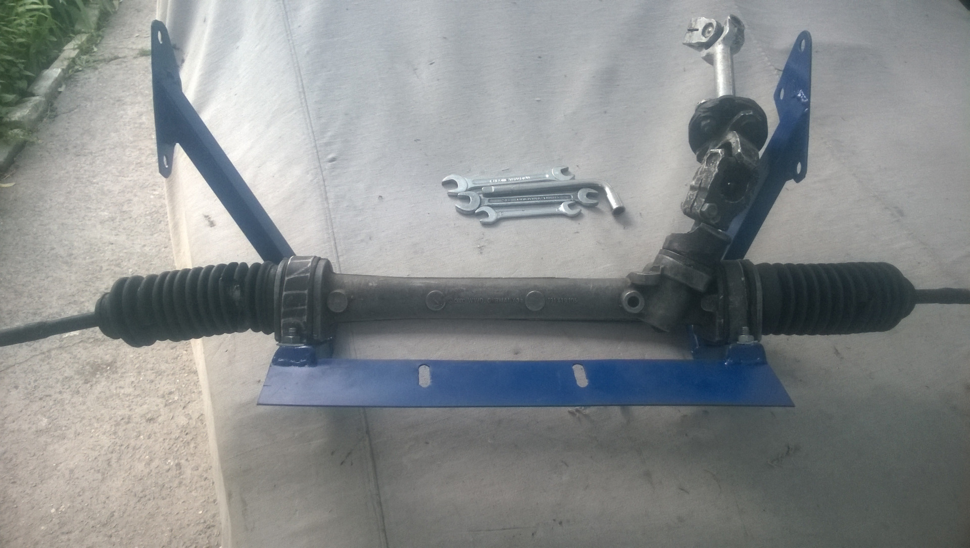 Рама съемная всё как положено, к тому же двигатель низко и если бы я делал крепления на балке сварными пластинами то не стало бы оно. Повторюсь движок низко рейка были бы почти вся ниже балки.