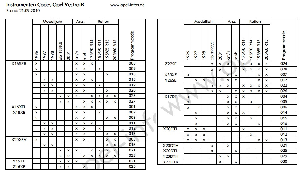 Привет. Выручи — нужен дамп приборки Vectra b, 1996 г., мот. z16xel, спид. 220 км, кол.195/65 R 15 — если не ошибаюсь индекс 003.