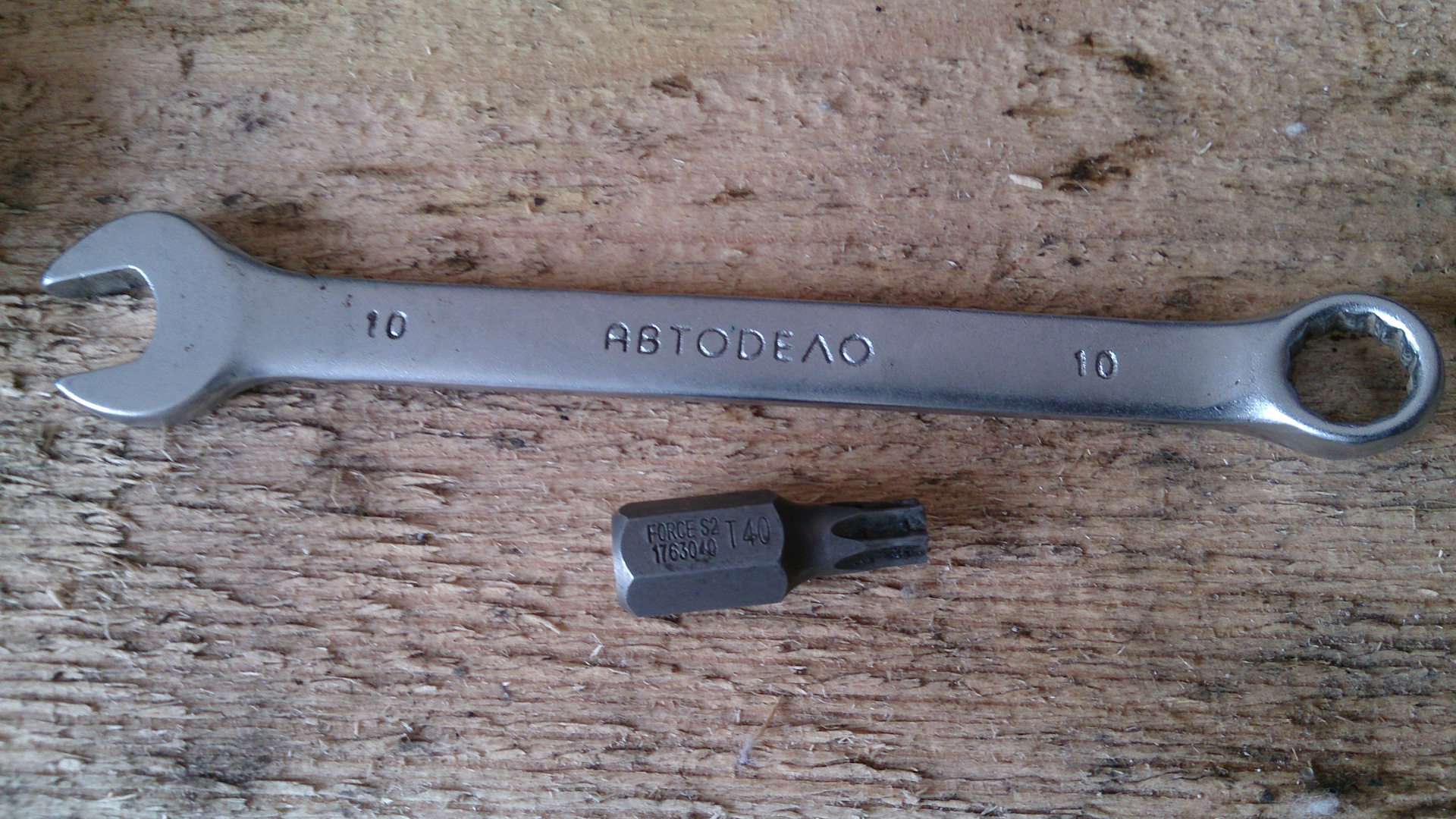 Далее чтобы снять ролик потребуется ТОРКс Т40 и ключ на 10. ТОРКс такой покупал для отворачивания пробки сливной в картере.