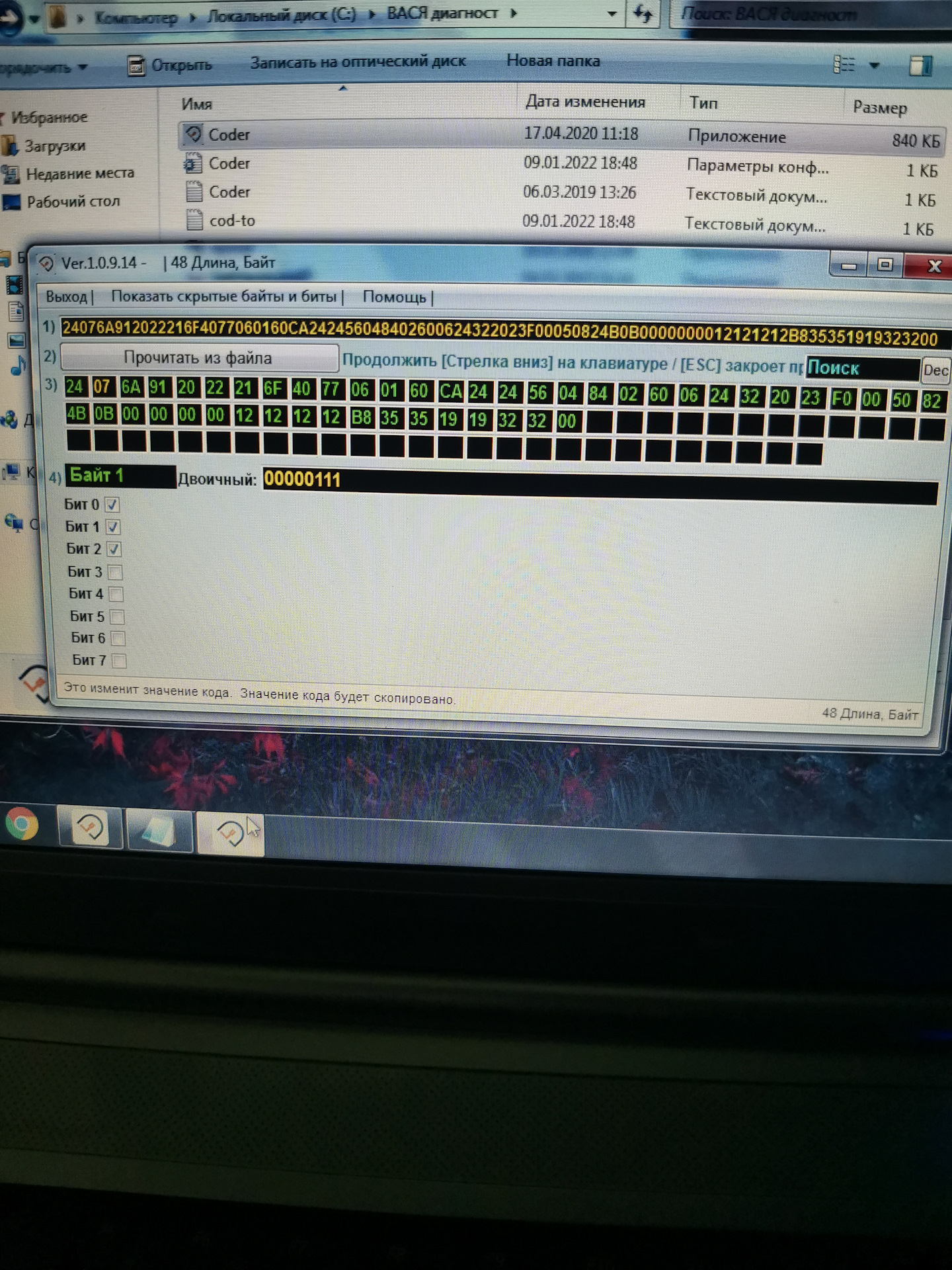 Тогда в компьютере в папке Вася диагност ищем файл с длинным кодированием. Название уже точно не помню. Открываем его и вставляем туда текущую кодировку 3 блока. Далее ставим галочки как указано в инструкции и получаем новую кодировку, которую вставляем в поле Новая кодировка в 3 блоке.