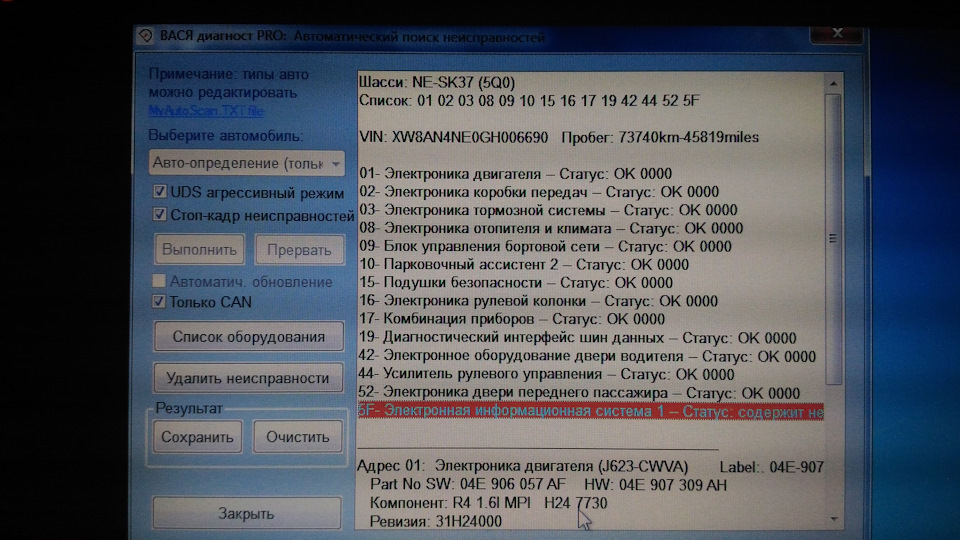 Подскажите пожалуйста! Я перекопировал эти последние 6 цифр, а старое значение не запомнил(б…ть), а в 5f таких менюшек не оказалось, для адаптации, вообще! Теперь индикация датчика на панели приборов загорается, при включении зажигания, но ни чего все равно не работает. По ходу блок тупо не поддерживает эту кодировку. Теперь ещё постоянная не стираемая ошибка вылазиет. Скажите, можно как то обратно все вернуть, или может есть какой то другой способ кодировки?!
