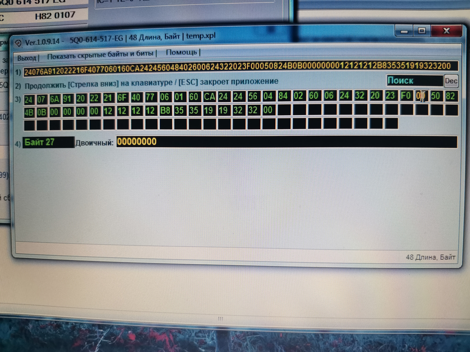 -байт 27 — включаем биты 4 и 5 (1-й вариант) или биты 4,5,6 (2-й вариант- для парк пилота)