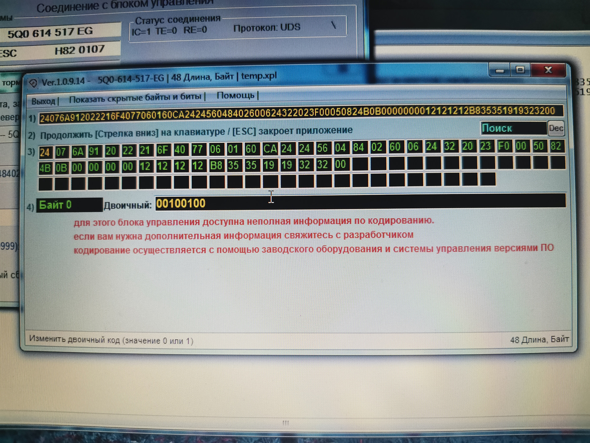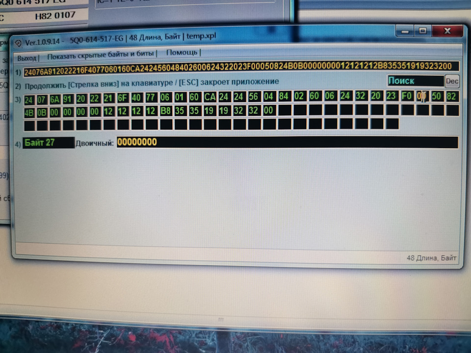 Не подскажите такой момент, мне активировали в воронеже эту систему, сейчас купил себе obdeleven и решил проверить текущую кодировку 3 блока в калькуляторе, отличается только 27байт у меня значение 30 (включены биты 4,5) а калькулятор выдает 70. Куда копать?