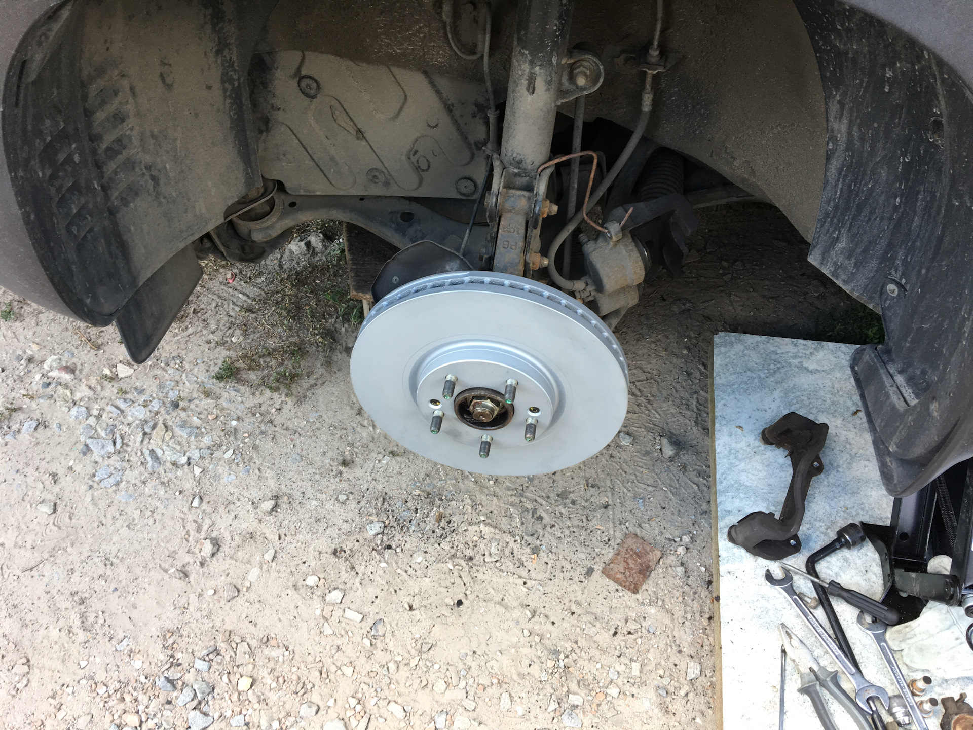 Буду колодки менять, проверю станут ли новые, а то из-за ширины диска, возможно, что придётся с каждой колодки снять по 1 мм толщины!