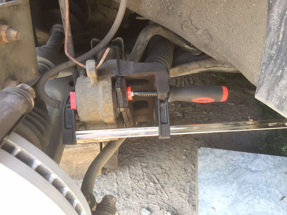 кстати, для вдавливая тормозных поршней использовал обыкновенную струбцину!