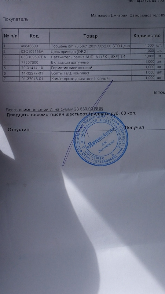 Да, для интересующихся: поршня поставил KS (kolbenschmidt), заменил турбину на новую DDT, заменил цепь, натяжитель, помпу, расходку. Все вкруг встало: 40т.р. работа, 50 запчасти, 25 турбина.