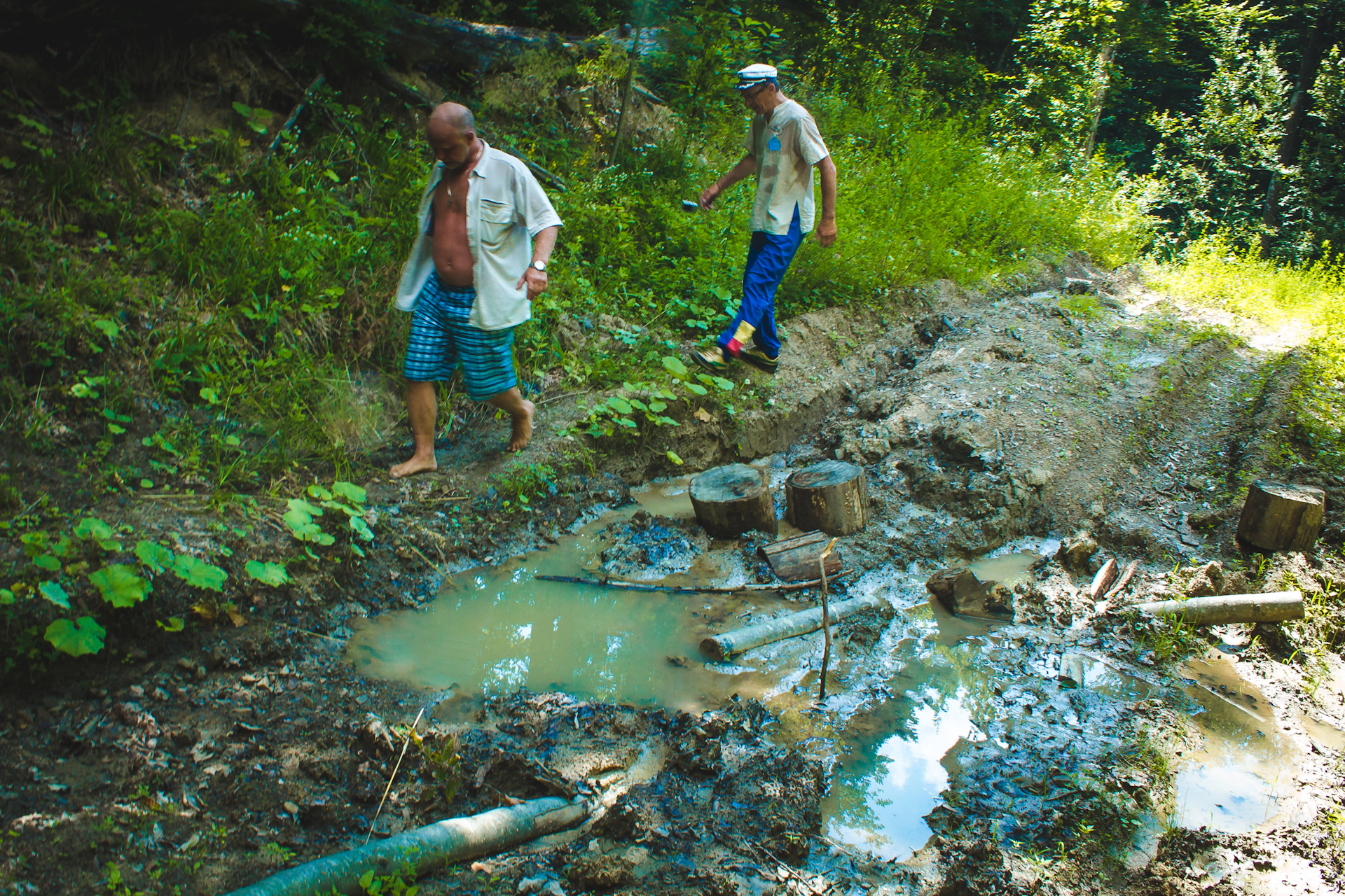 Путь горизонтально выровнялся и начались участки с лужами и грязью.