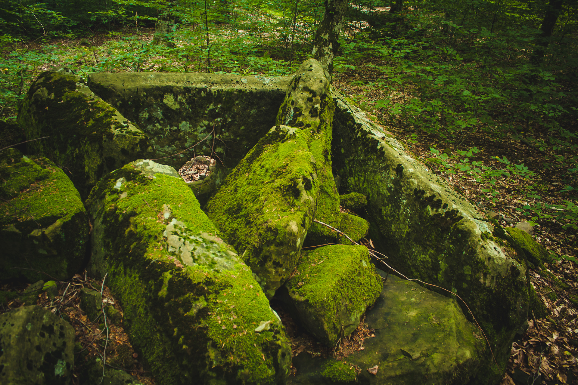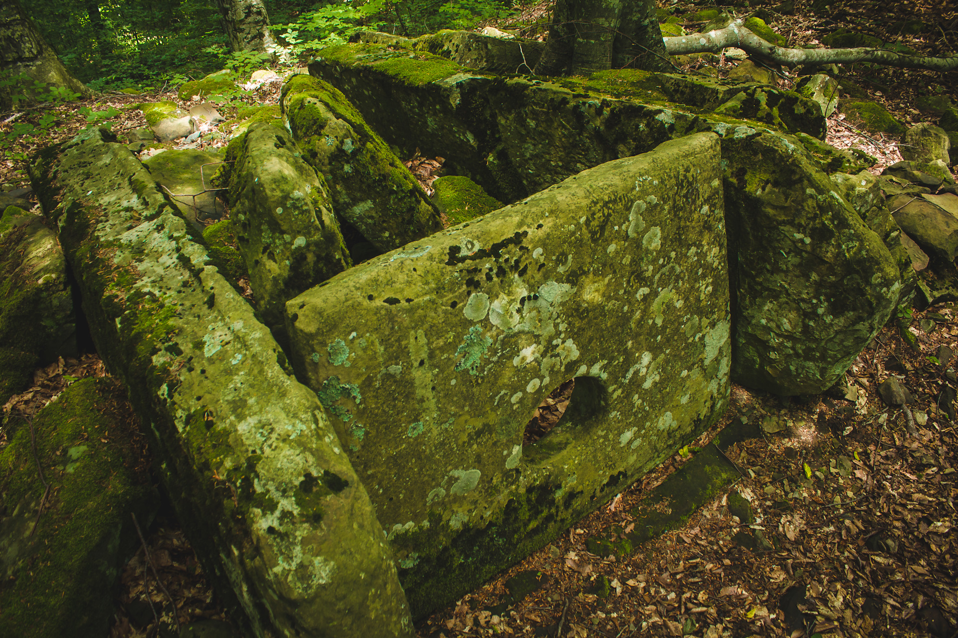 Как видно по снимкам, из более уцелевших остался один из дольмен(ов?). У него сохранились и стены и крыша и каменная пробка. Внутри он пустой.