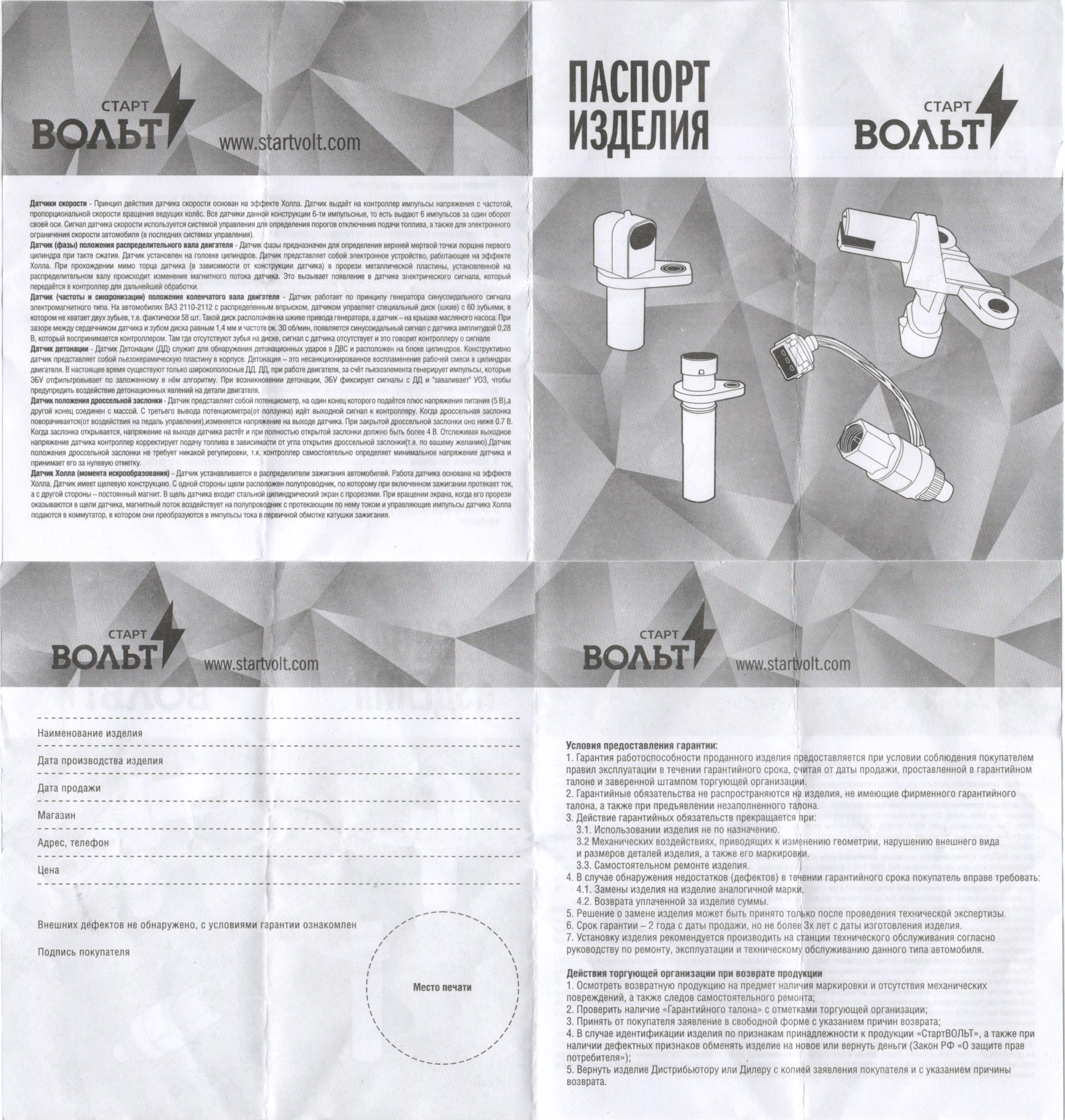 Так же в комплекте был и паспорт изделия, правда о датчике ABS не было ни слова :)