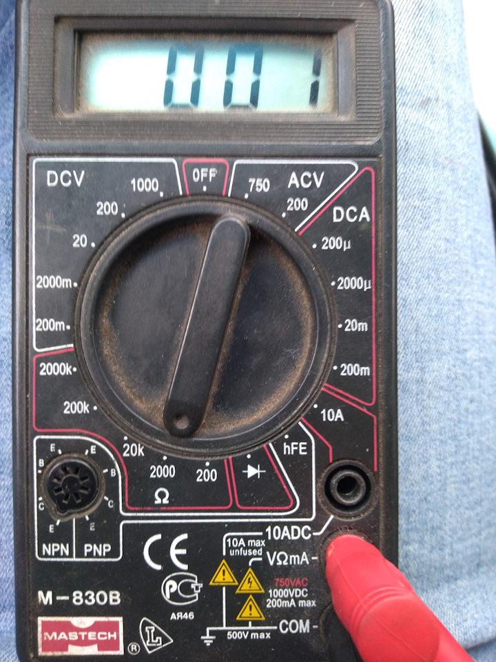 У меня почему то что так что наоборот показывает 001, как будто сопротивление равно нулю, все равно что два щупа соедененны напрямую