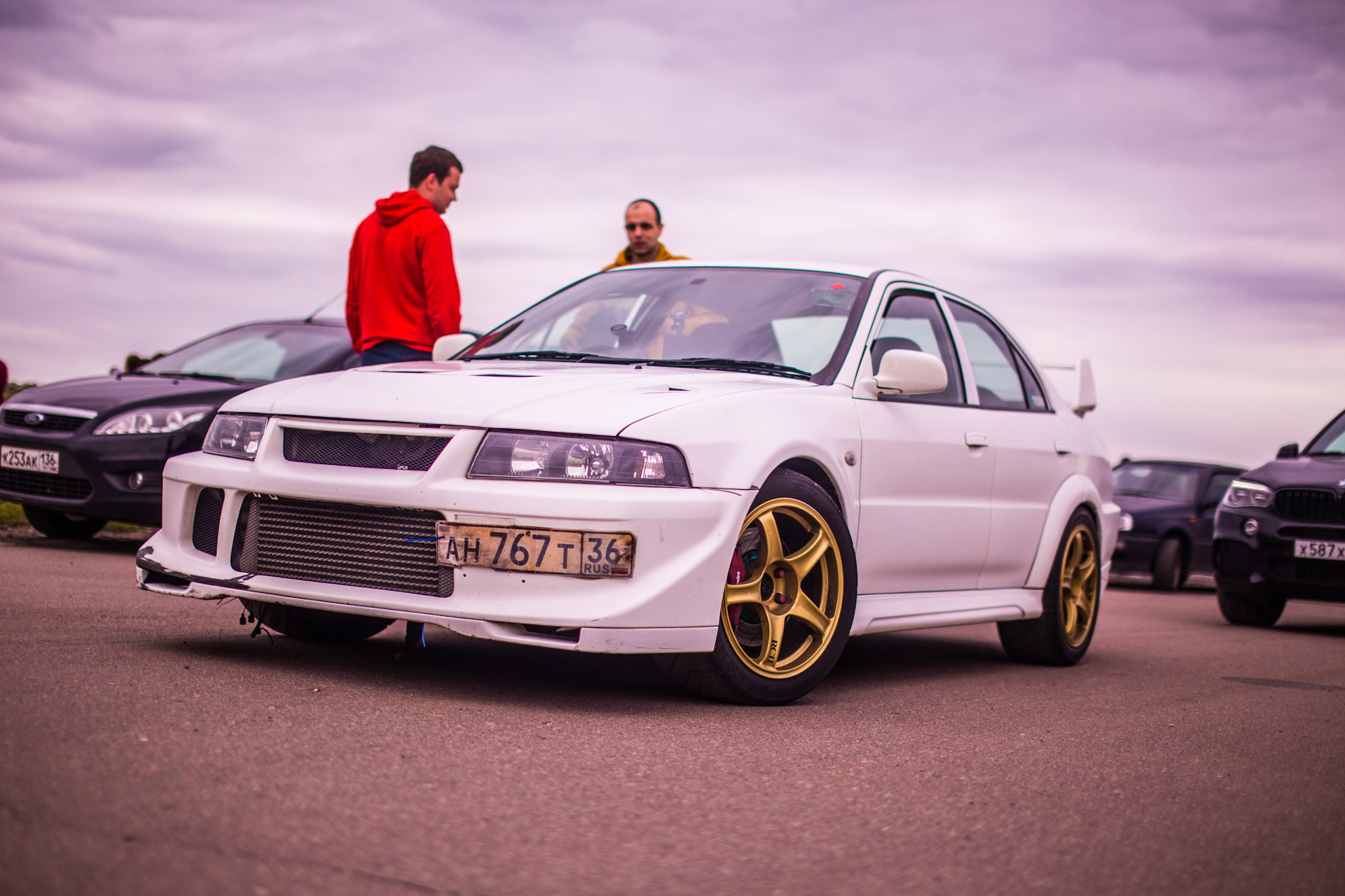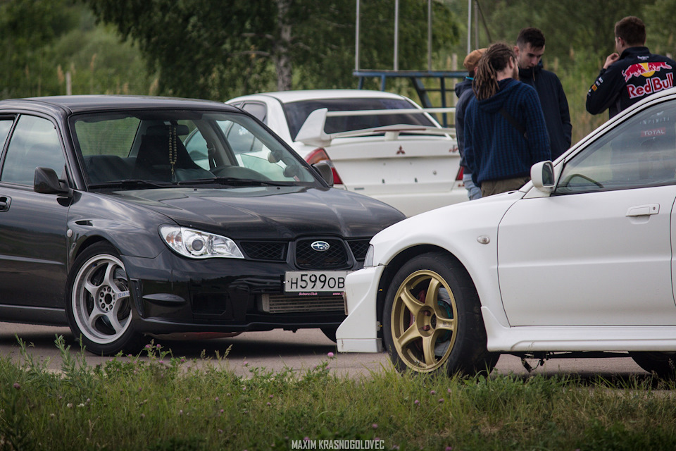 На фото не видно, но машина достаточно сильно стала крениться, т.к. вместо потёкших Tein'ов накануне установлена подвеска Kayaba New SR, с неведомыми задними пружинами и установленными под них проставками из МДФ. Проблемы с пружинами выяснились за пару дней до атаки и что бы поехать пришлось импровизировать. Так же почти все повороты на трёх колёсах, но зрители говорят, что было и на двух :)