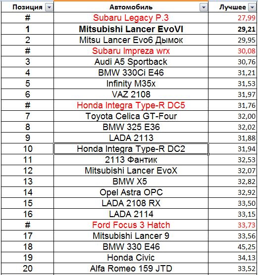 Ремень заменил, подубасил ещё вне зачёта и поехал домой, а времена в итоге получились такие: