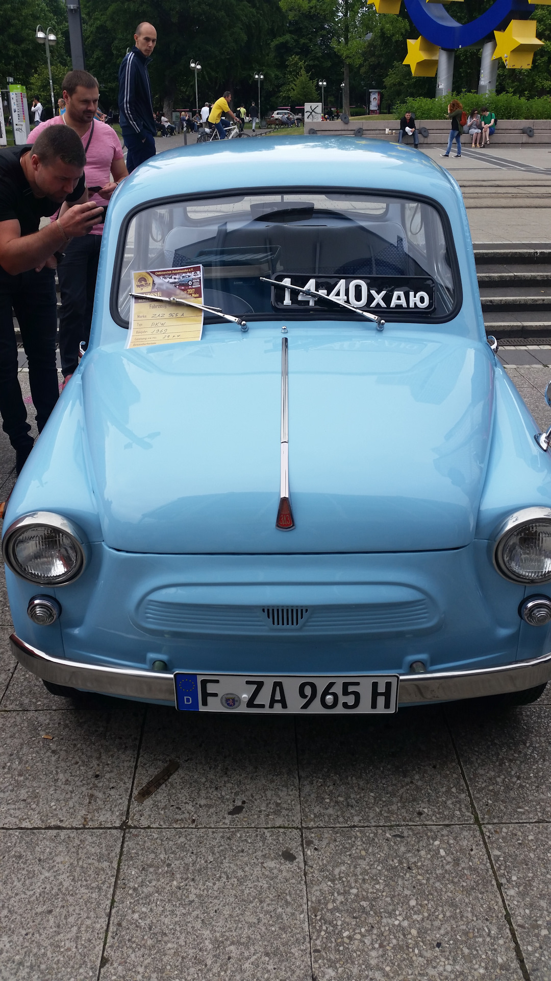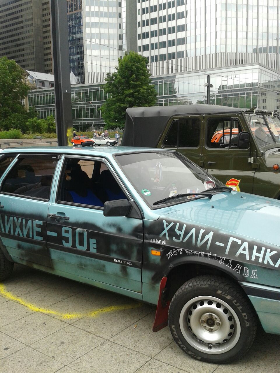 17 июня в городе Франкфурт на Майне прошла интересная автомобильная выставка советского автопрома. GAZ13de и организатора данной выставки я знаю еще по драйву, поэтому не пойти было не вариантом. Жена тоже с восторгом встретила такую новость, поэтому не долго думая собрали детей и поехали в город. Припарковались у меня на работе, а оттуда пешком дошли до Willy-Brandt Platz, где и проходило данное мероприятие. На подходе к месту встречи уже поняли, что в городе проходит нечто русское. В парке кругом были русские, русская речь, русские маты, русское: "Дима не бегай по траве, там собаки насрали". Поэтому приходилось часто кидать взор на бетонных банковских "исполинов" мегаполиса, дабы не забывать где же я нахожусь. Место выставки было выбрано все же не лучшим так как напоминало проходной двор. Уж при хорошей рекламе и Klassikstadt собрал больше публики и был бы куда более специализированным местом. Но думаю, что организаторы куда дальновиднее меня. Ну ладно, хватит вокруг да около, давайте знакомиться с экспонатами. А собралось их аж двадцать четыре.