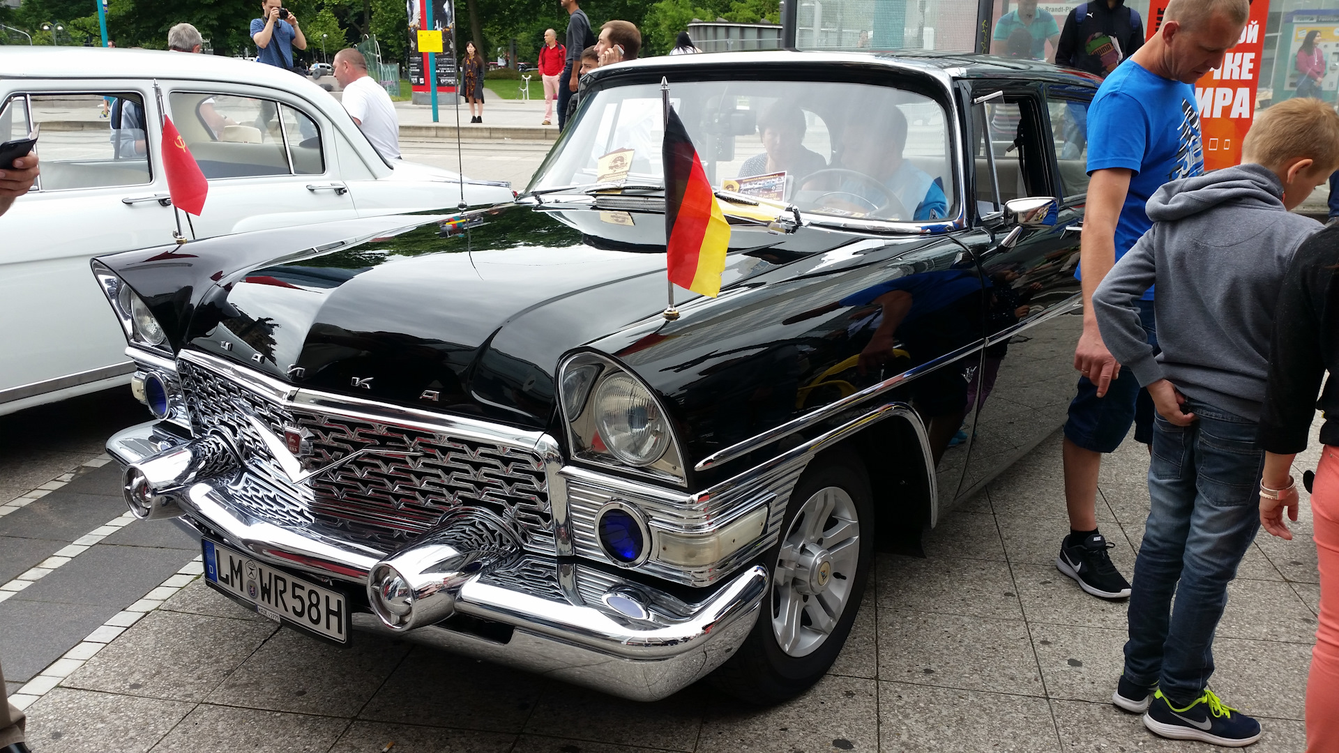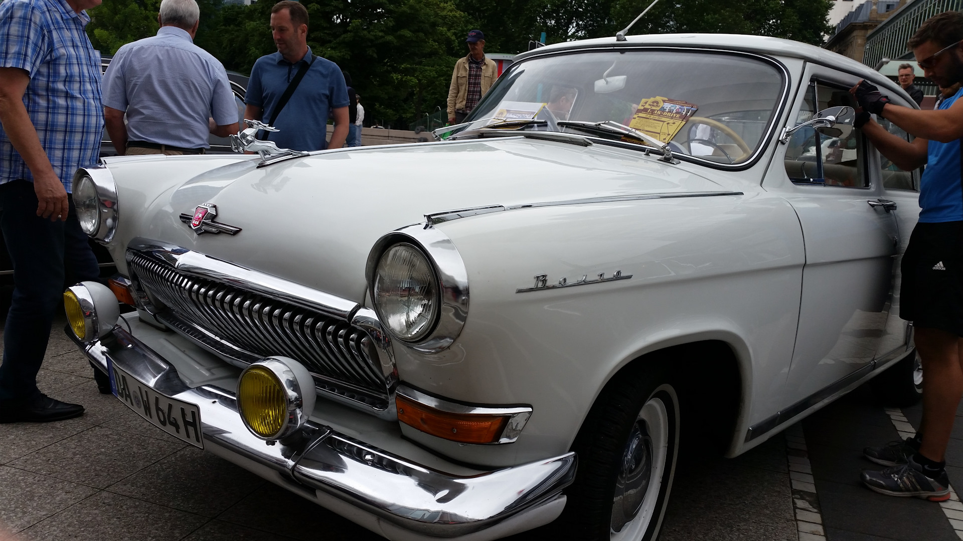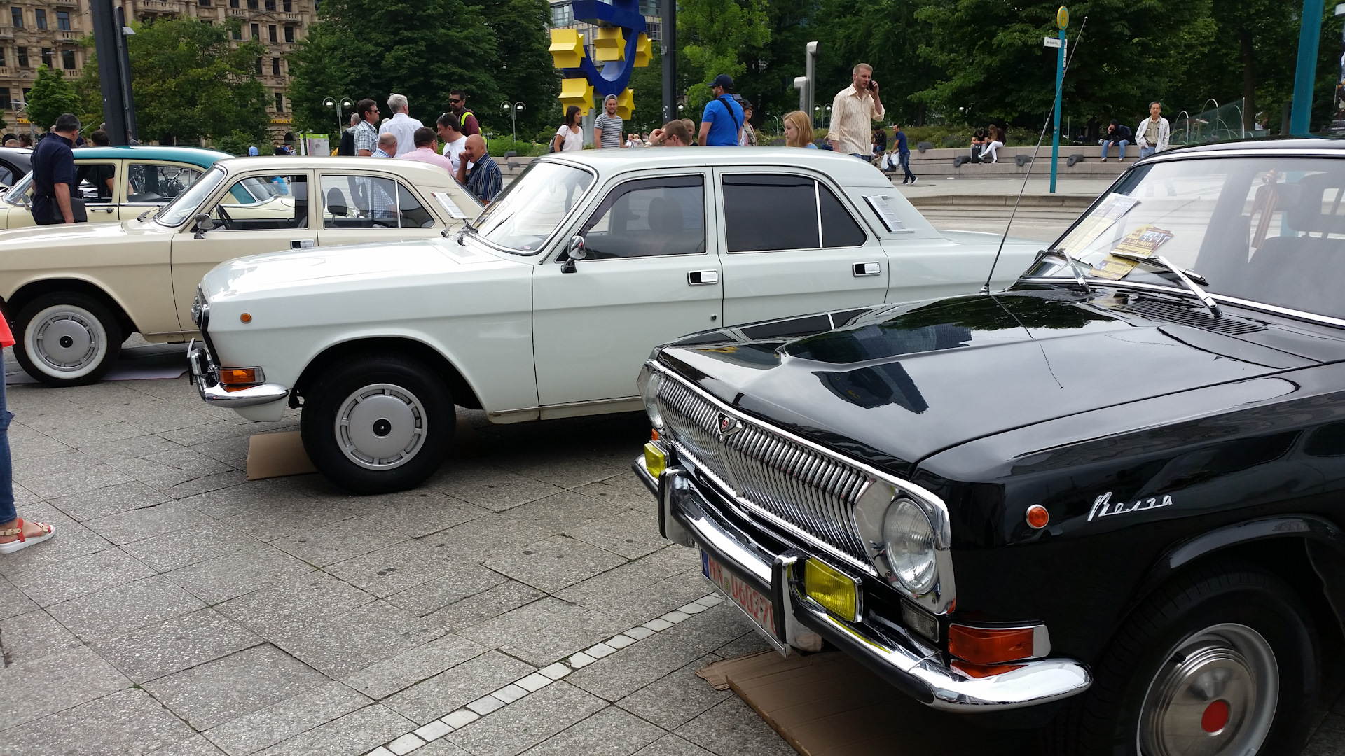Теперь немного отсебятины, к сожалению выставкой я остался не доволен. Идея отличная, экспонаты удивительны, однако подход к мероприятию на не очень высоком уровне. Во первых вернусь к месту проведения, все же эта площадь не лучший выбор. Второй пункт моего негодования, мало информации о участниках выставки. Да на машинах были информационные сводки: названия машины, года выпуска и мощность мотора, но за каждой этой моделью стоит наша советская история автопрома и если бы организаторы сделали некие информационные щиты возле машин на немецком и английском языке, то уверен что среди заинтересованных прохожих было б куда больше местных, нежели русских. Я сам стал свидетелем того, как два немца беседовали и один из них пробовал узнать информацию о Чайке, но кроме вышесказанного ничего не было, и второй немец лишь пожал плечами и сказал: " А жаль, машина стоит того что бы о ней знали".