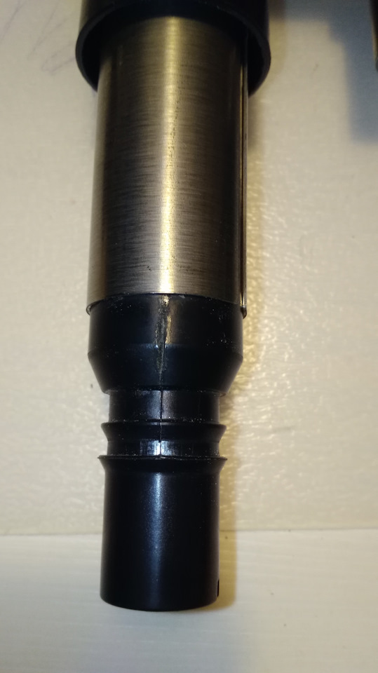 Именно по этой канавке искра уходит на блок. Вторую, которая блестящая, не снять. Тебе нужно проштробить эту выгоревшую полоску гравёром, или чем либо выскоблить. После, уже выскобленную и очищенную, канавку залей эпоксидкой. Когда она высохнет, посади на канавку термоусадку. В итоге, надеваешь резиновый удлинитель, ставишь всё обратно и радуешься. Ошибка по пропуску пропадет с десятого-пятнатцатого пуска.