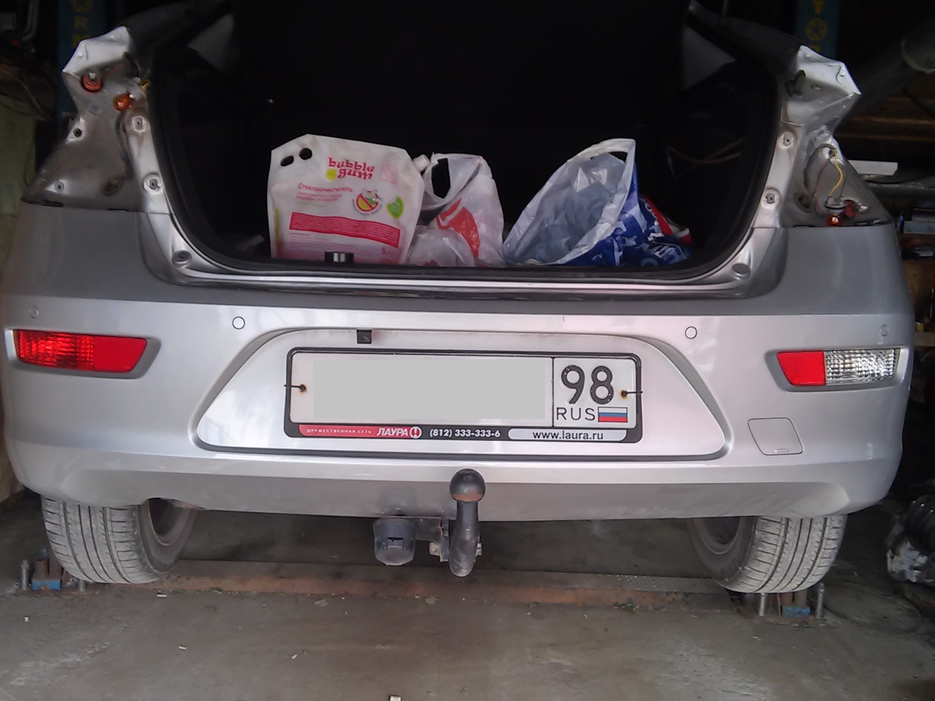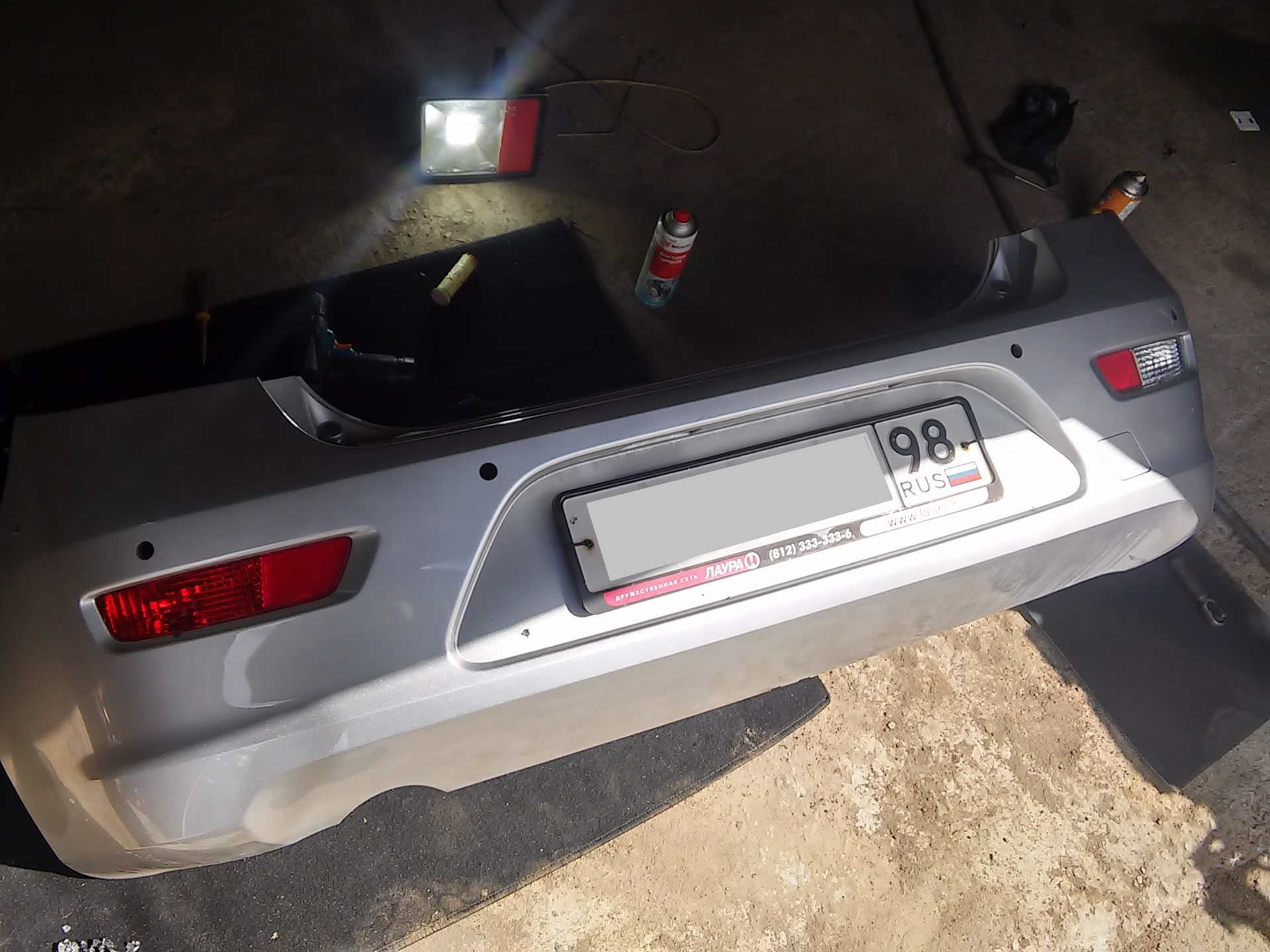 К стати, на крузах хетчбэках, под левый и правый датчик парктроника, уже есть штатные крепления, они находятся в рамках фонаря заднего хода и задней ПТФ . Остается толко купить средние два крепления и для них вся разметка с внутренней части на бампере есть.