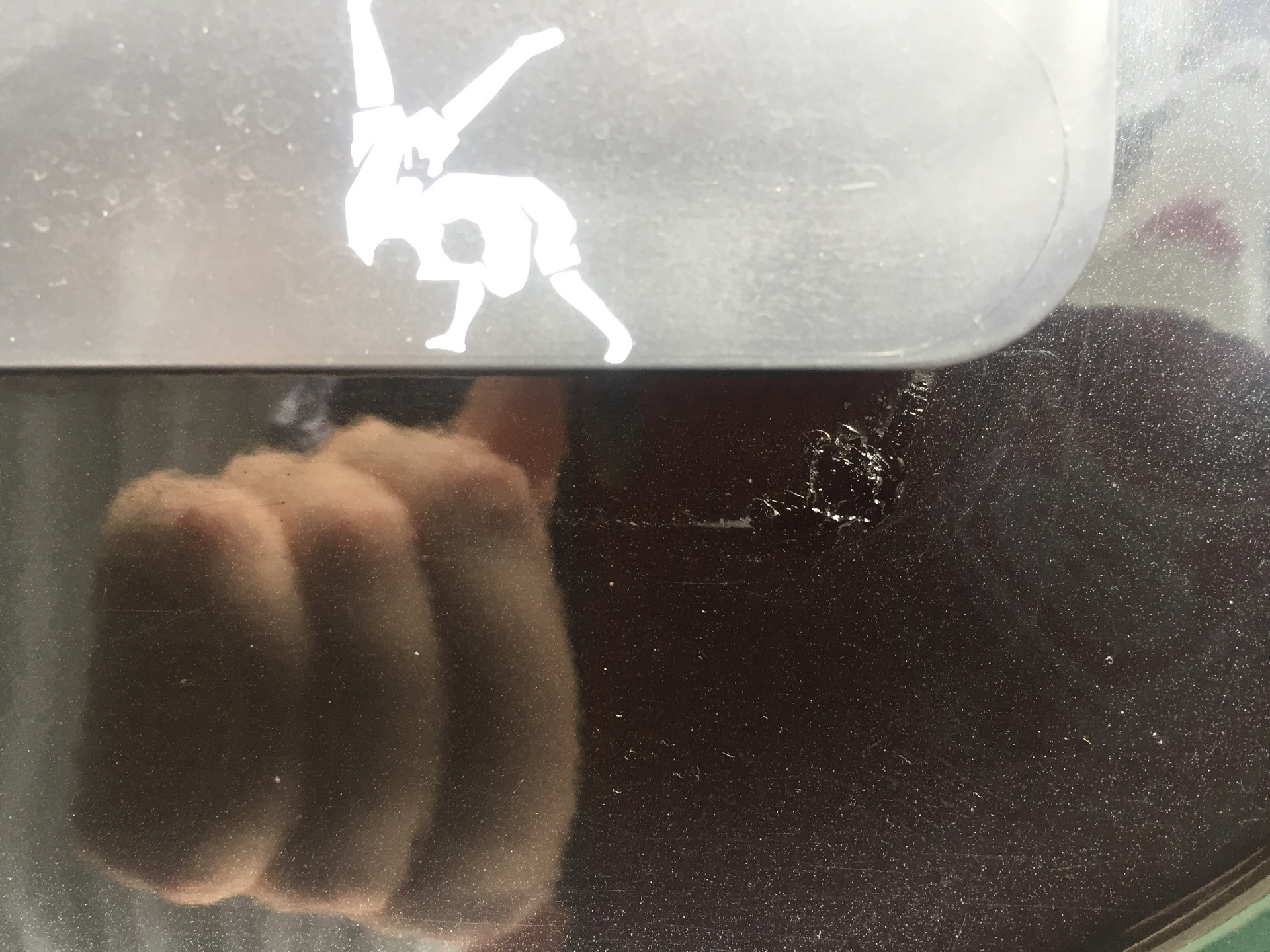 так же один скол на капоте, и один (вы не поверите) под номерным знаком задним. Как, я так и не понял… В общем, обысная процедура. Наносим сначала карандашом, затем чуть смываем, ждем чтобы впиталось, для уверенности проходим еще раз и затем лаком все заделываем. Даем просохнуть. Делал это недели 2 назад. Прошло много дождей — ничего не стерлось, все в норме.