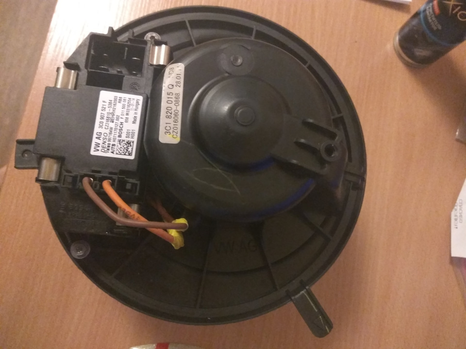 И, что самое важное, можно приобрести не мотор в комплекте с резистором (а это 20+тыс. руб), а моторчик от более "бедной" комплектации. Поглядел Емекс, и, увидел в уценке неоригинальный моторчик печки с поврежденным пропелером. Разъем там больше подходит на "папу", что находится в самом резисторе. Цвет проводов совпал. Как и писали раньше, с помощью кручения как бы "выкрутил" пропеллер со старого двигателя и навернул на новый. Конечно, красивость немного пострадала от плоскогубц, но это не критично.