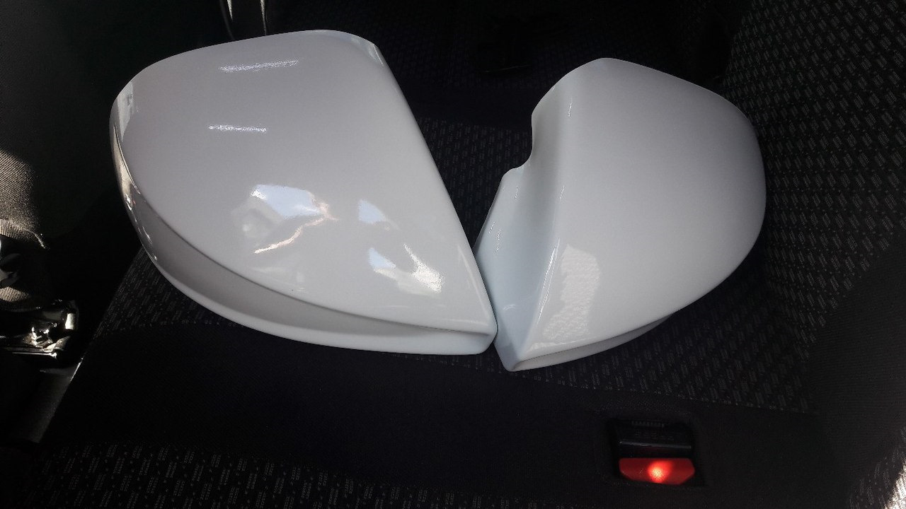 У этих накладок изначально перед установкой рекомендуют подрезать место где складывается зеркало. Себе примерил как то показались громоздкими и продал. На белом вроде норм.