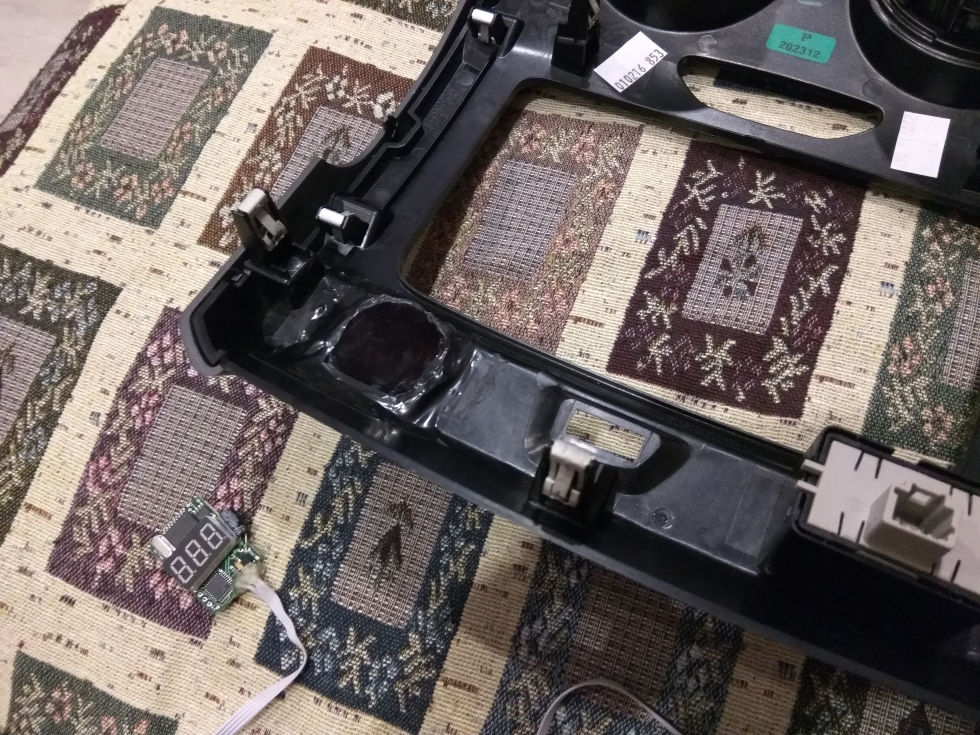 Классно получилось! А у меня вместо заглушки кнопка выключения парктроника — жалко было её аннулировать. В итоге я поставил индикатор температуры в другое место, более колхозно: www.drive2.ru/l/462935353175572651/