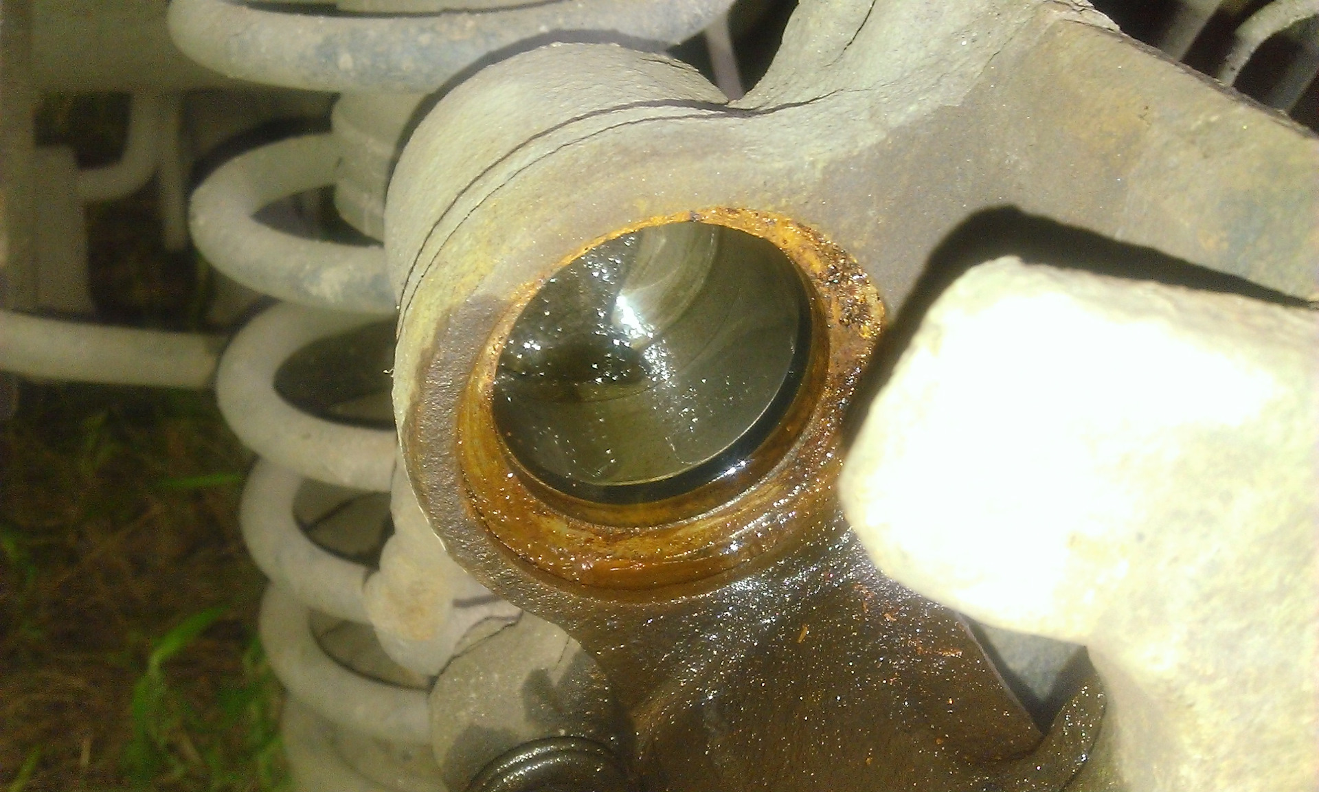 Пришлось откручивать тормозную трубку, снимать суппорт. Половина углубления для пыльника было заполнено ржавчиной. Долго ковырял ее отверткой отмачивая в тормозной жидкости и Уайт Спирите. Идеально вымыть не получилось, но канавку под новый пыльник освободил.