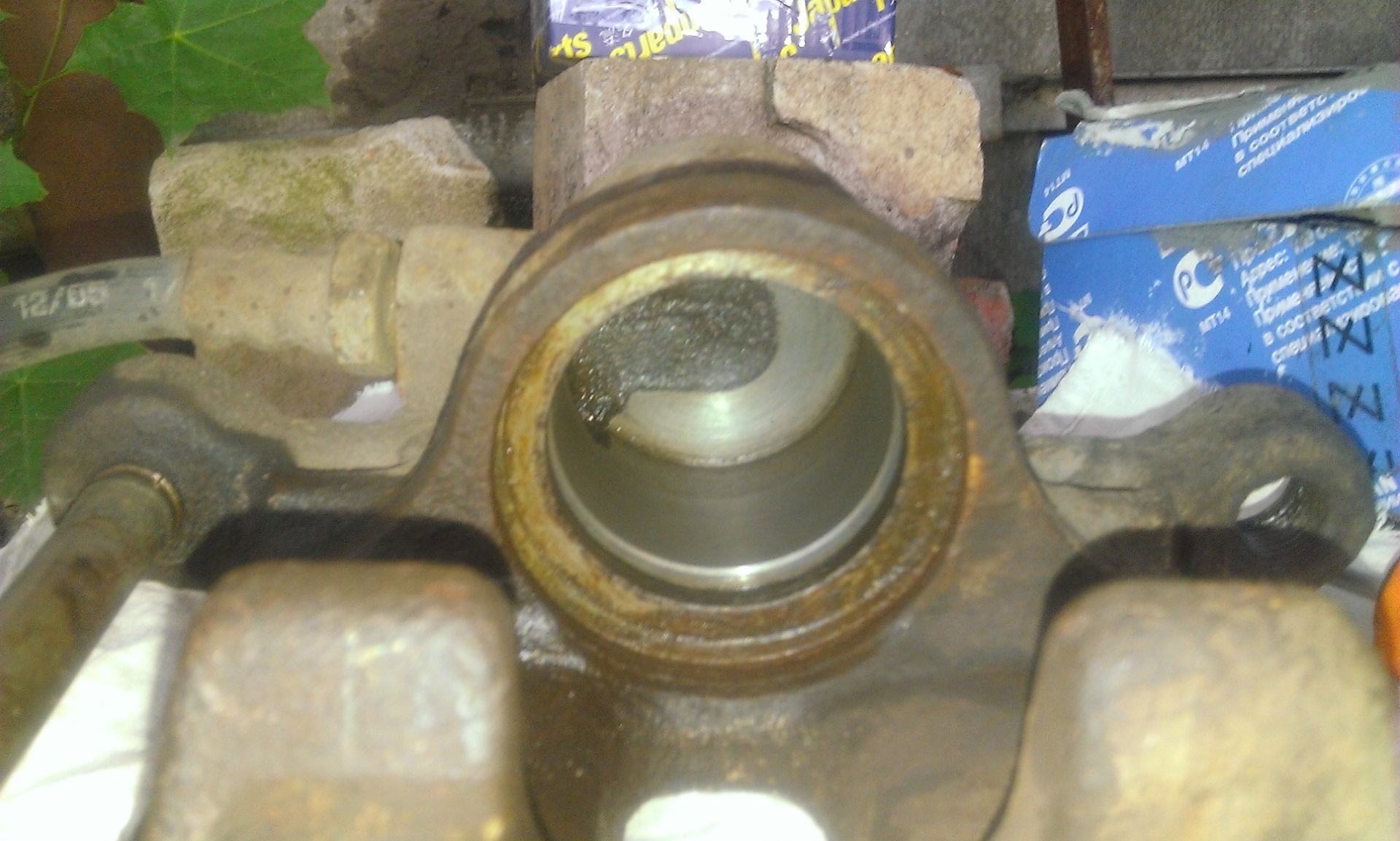 Оказался порванным пыльник тормозного поршня, поршень начал ржаветь.