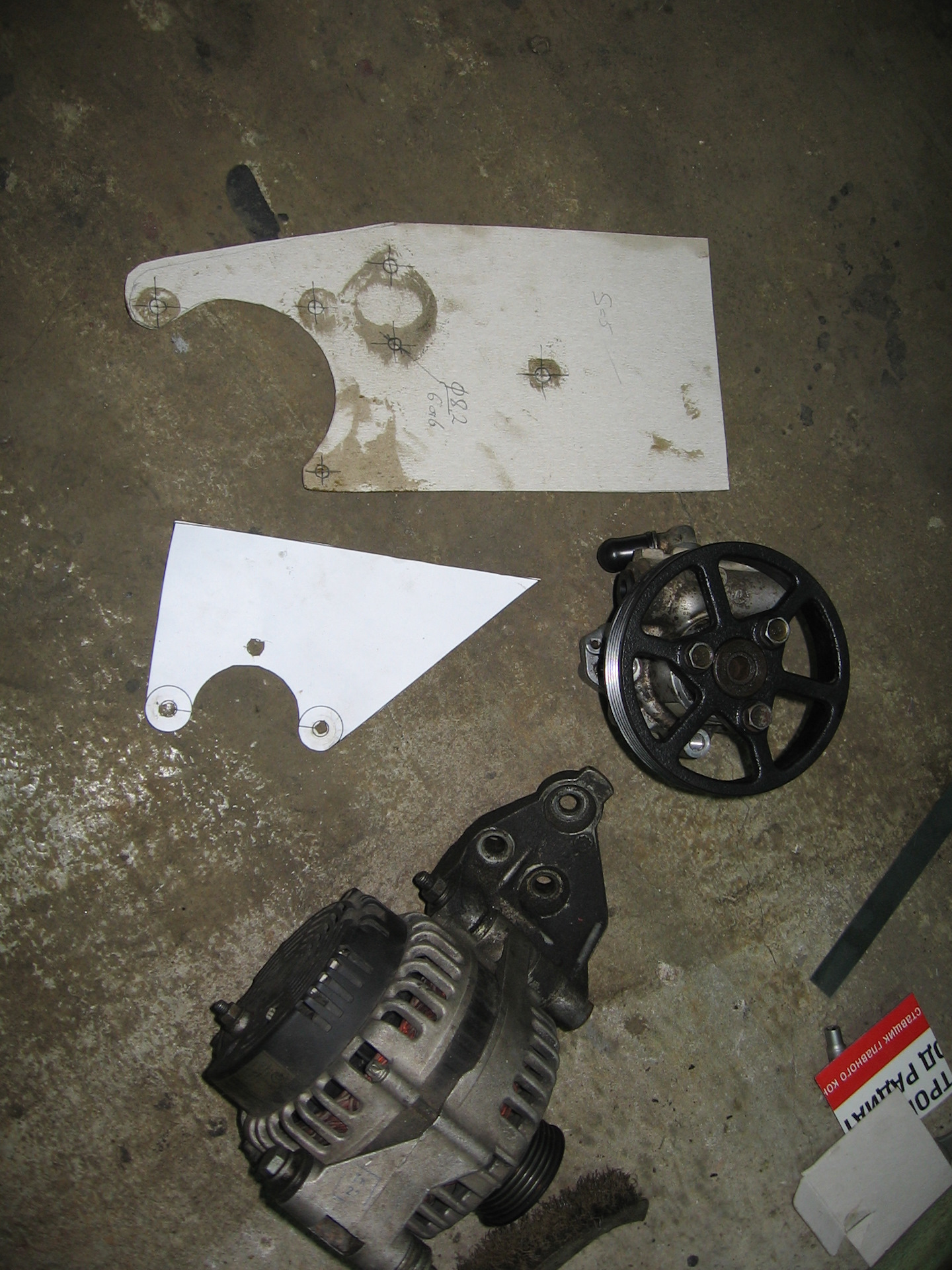 Крепление насоса заняло подольше времени, пока из картонки вырезал потом из металла… В будущем на этот кронштейн планирую и генератор перенести. Пока закрепил только насос ГУРа, даже кронштейн не красил, а временно отработкой помазал.
