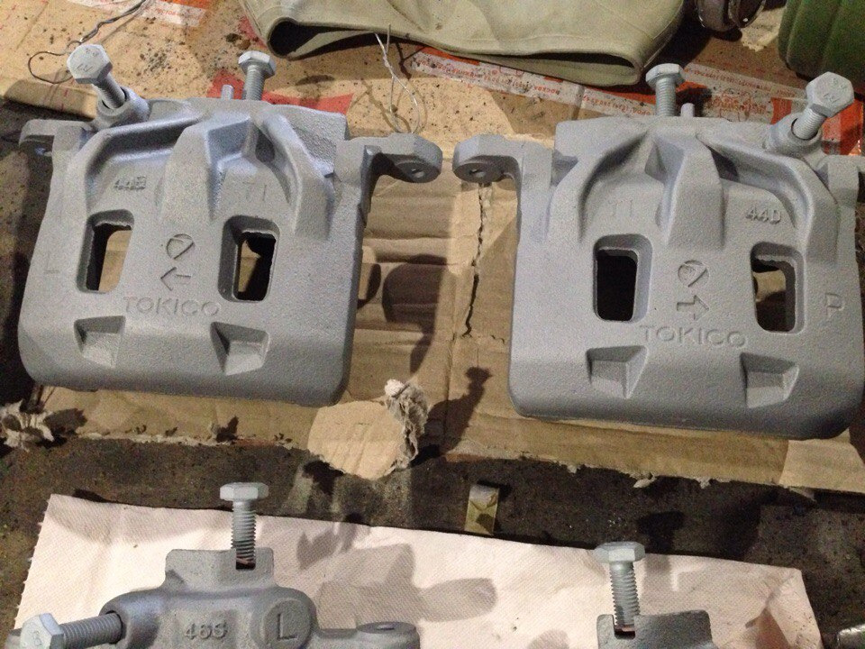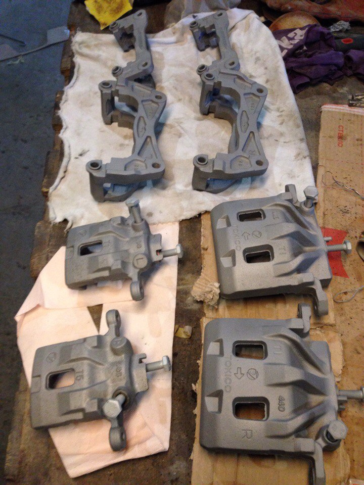 Предпоследним шагом было снять суппорта, отпескоструить и покрасить суппорта.
