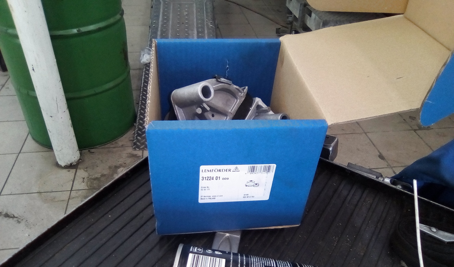 Заменить его не удалось. Провернули закладную. Надо резать, снимать подрамник. А времени у меня на это не было. Короче, это отложили на среду. Еще под замену средняя и задняя часть глушителя. Блин а где деньги-то?