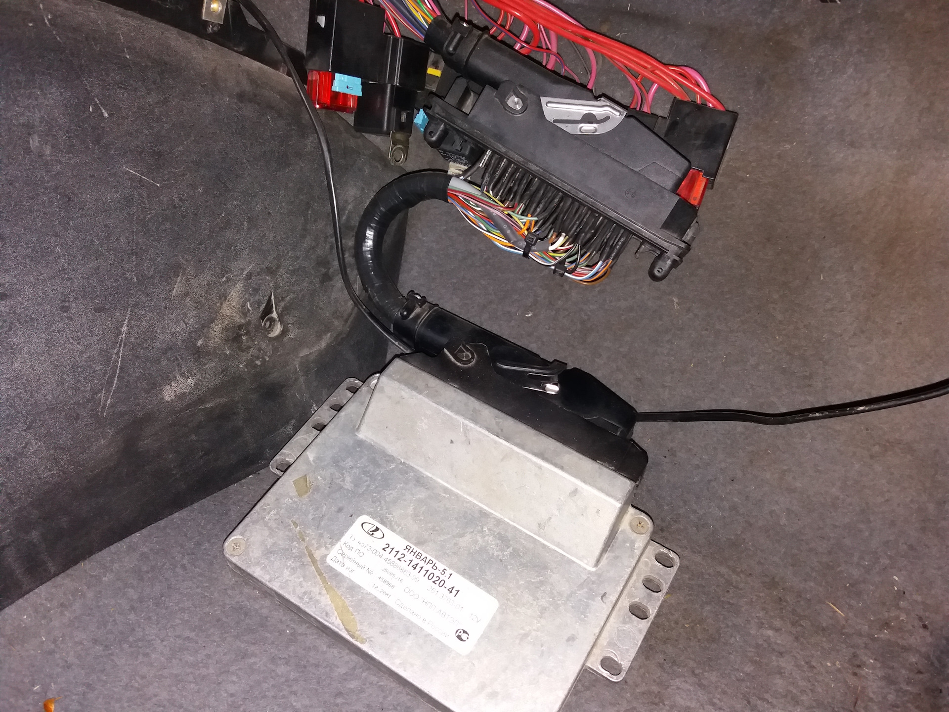 Все клеммы вставлены, пробное подключение к ЭБУ Январь 5.1, включение зажигания, запуск двигателя.