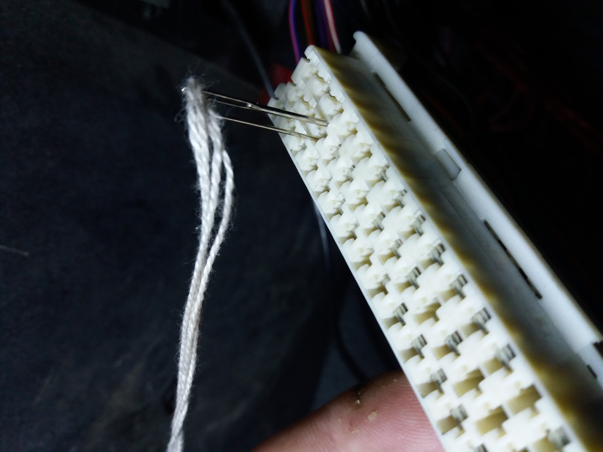 Для переделки разъема необходимо переставить 15 клемм, как указано в таблице. Самая засада кроется в том, что клеммы из разъема извлекаются очень тяжело. Способов по их извлечению в интернете описано не много, я остановился на двух иглах, которые вставляются в разъем, сжимая фиксаторы клемм.
