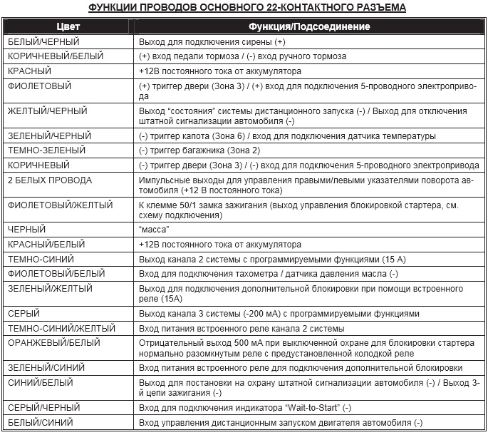 Белый-Чёрный (WHT-BLK) — Выход для подключения сирены — К сирене под капот, на красный провод сирены. (Черный провод сирены подключаем на кузов)