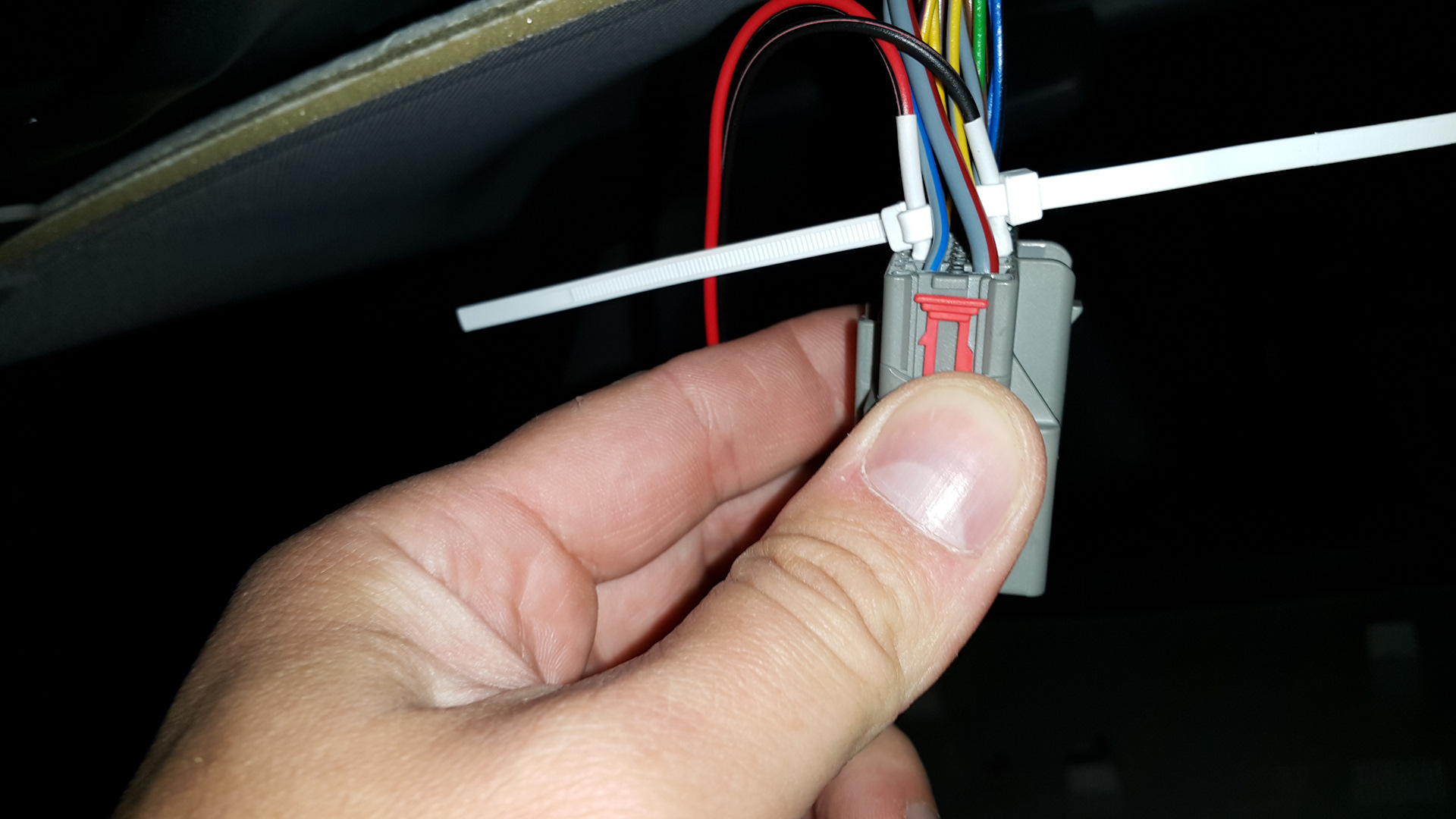 Теперь дело за клеммой, в разъёмы которой будет внедряться модуль. Их там две, нам нужна будет крайняя слева, если стоять лицом к багажнику.