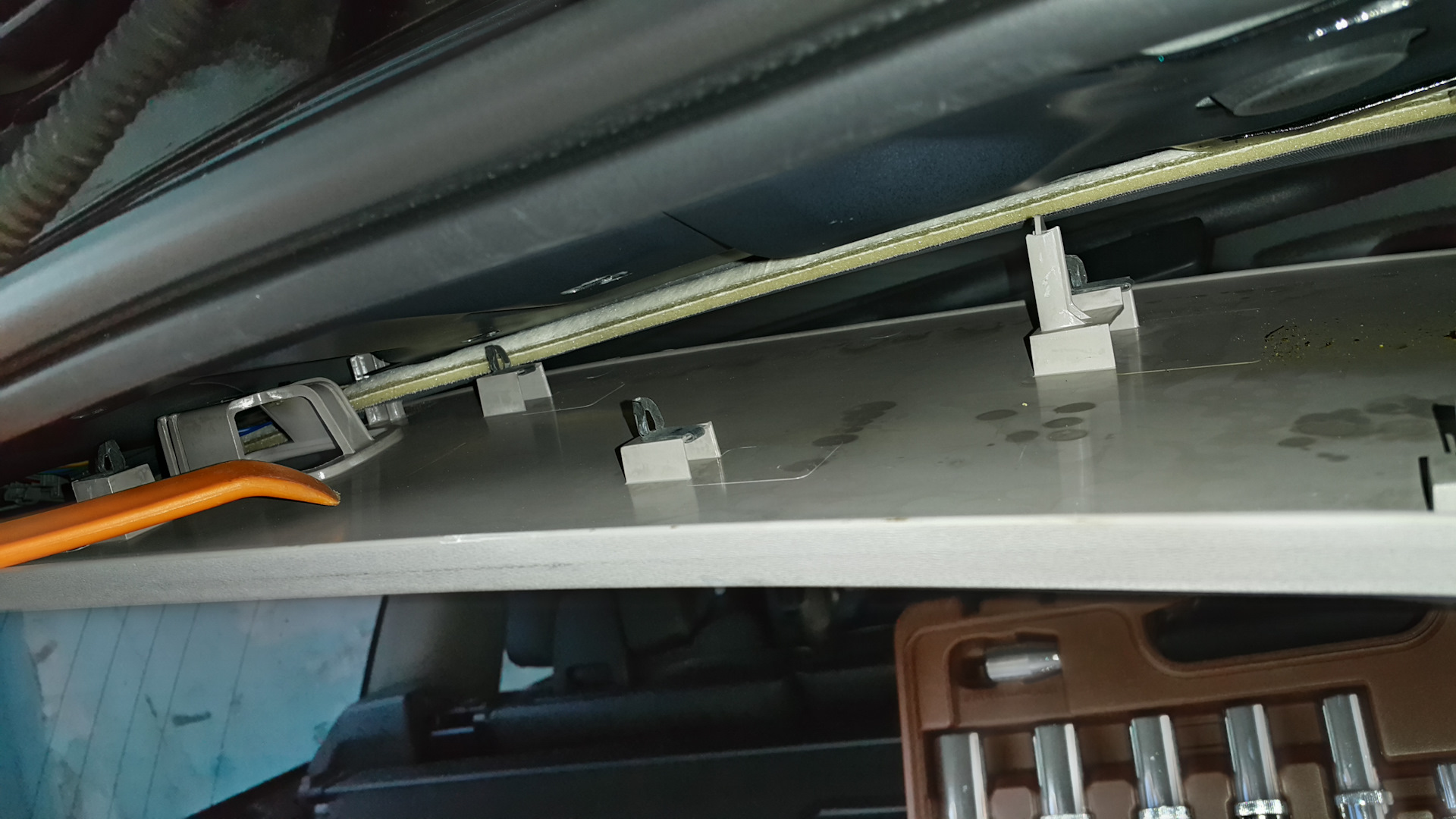 Затем ещё раз простучать панель в районе клипс для гарантированного защёлкивания.