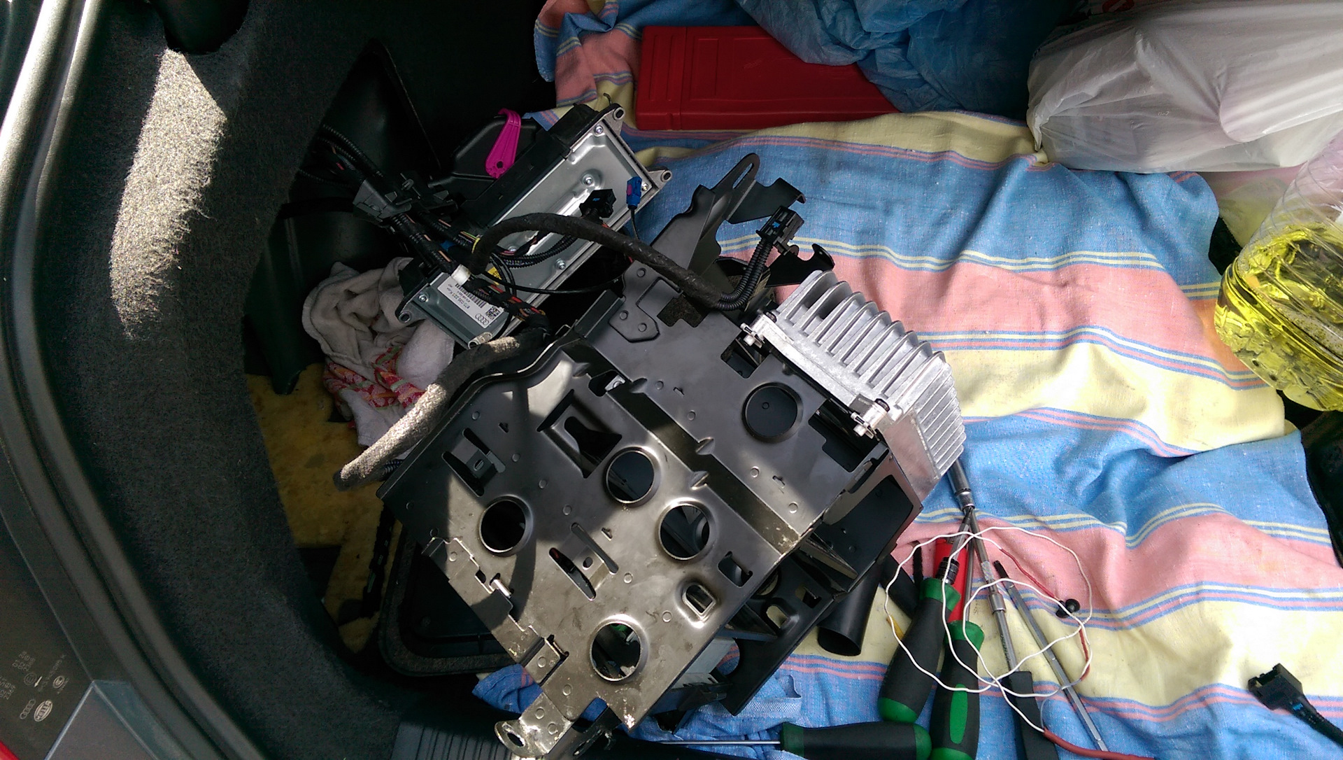 Все собрали обратно. Блок голосового управления оказался рабочим, встраивается в блок радио, его успешно трансплантировали в новый.