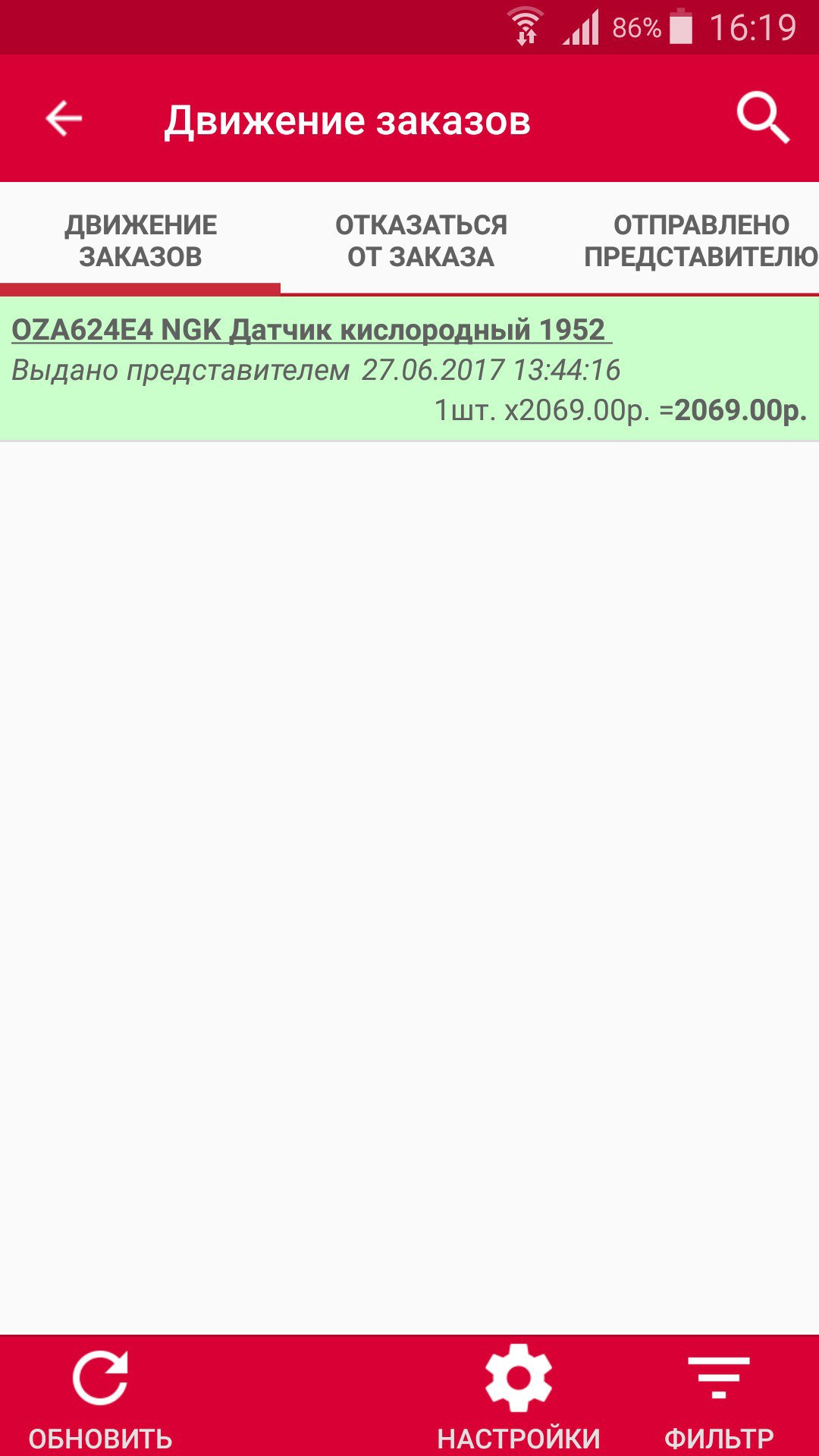 Со слов диагноста, новый датчик работает прекрасно.
