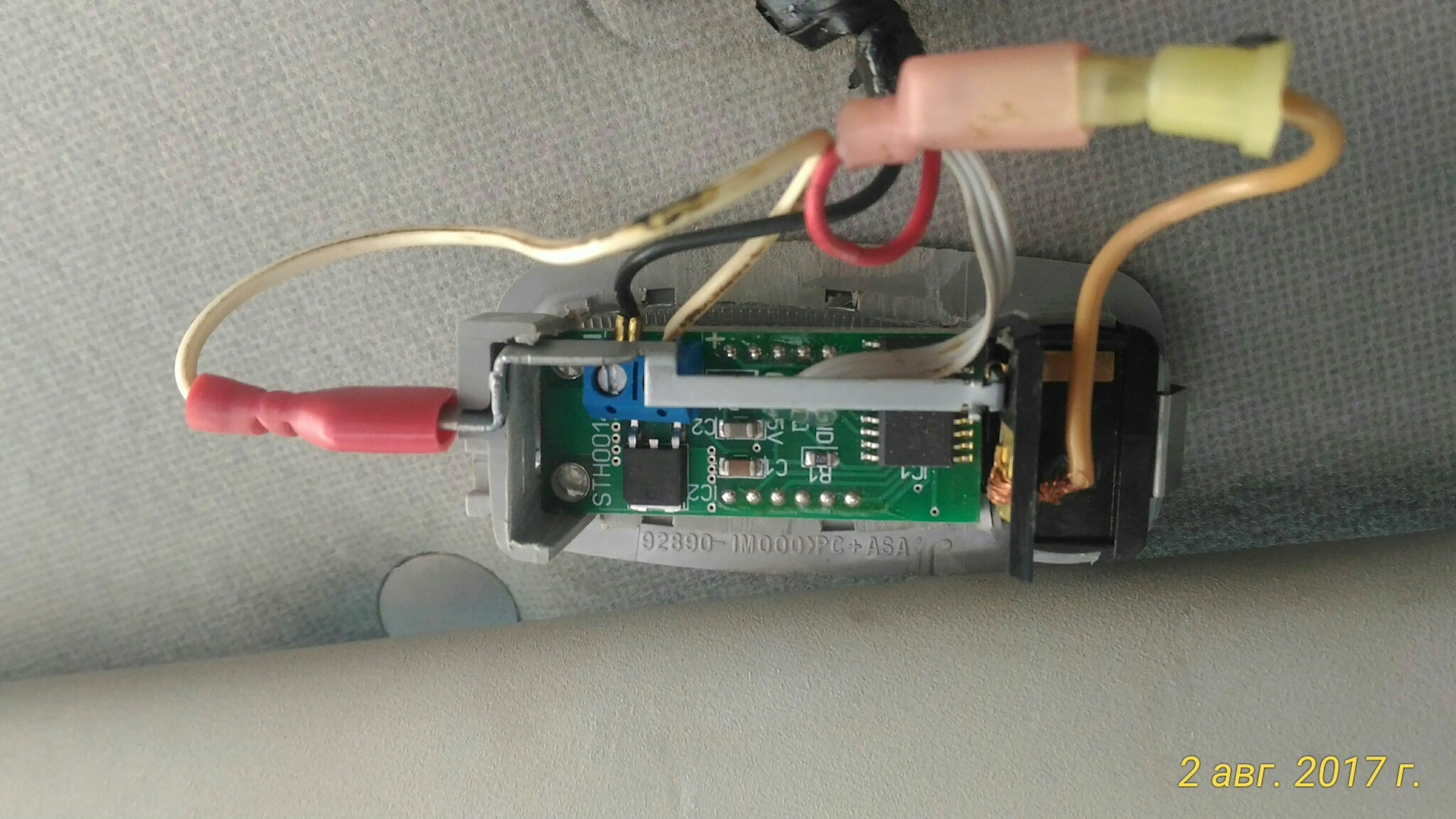 Точно.вспомнил, было несколько цветов.знакомый брал на КИА красный цвет, а еще был защитный экранчик я его брал но не пригодился.прикрутить к плафончику можно при помощи полотна по металлу и надфиля+пачка сигарет+пачка чая!если после установки видео у тебя остался провод лишний подключи к нему это провод на родной датчик.А вот потолок илевуюпланку передней стойки разобрать придется