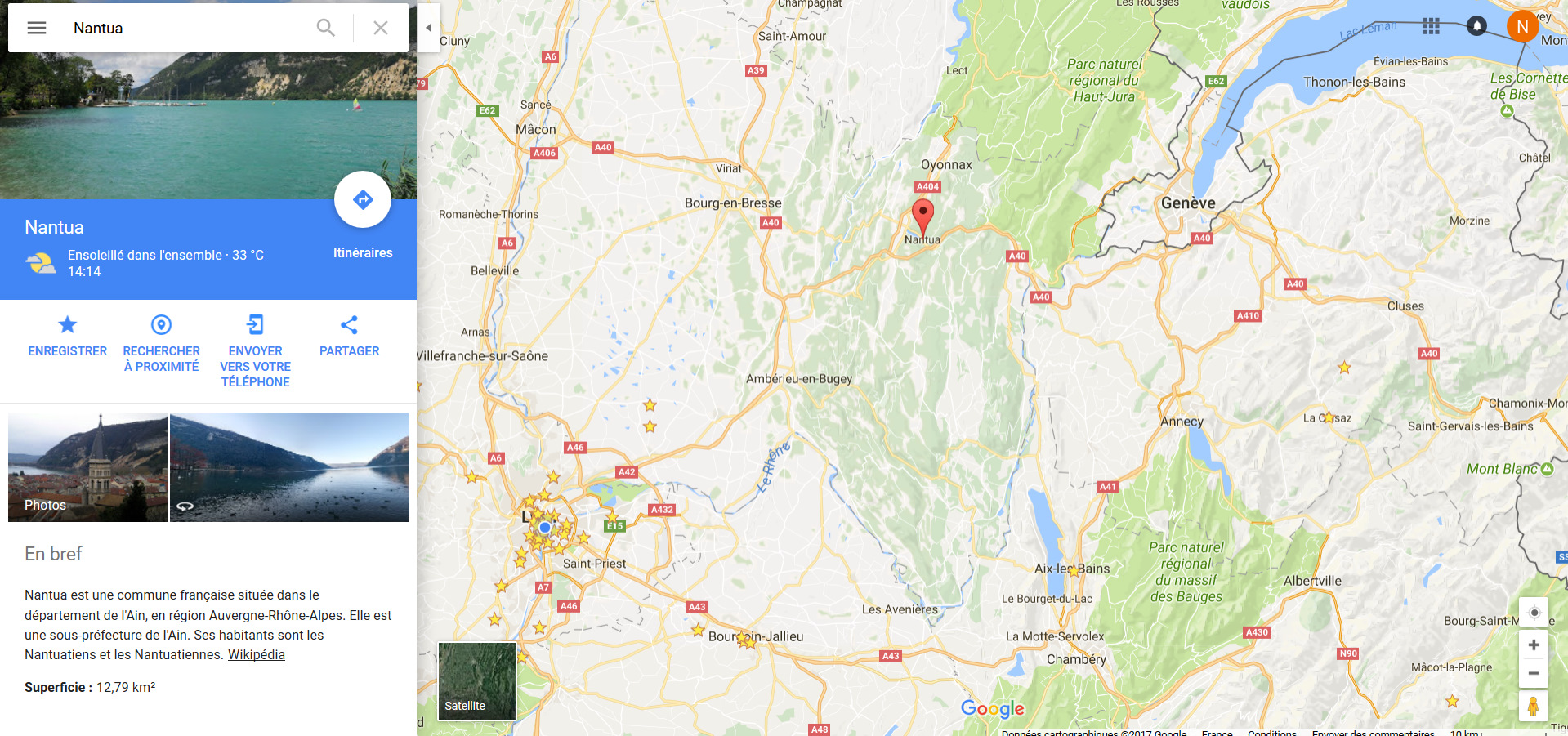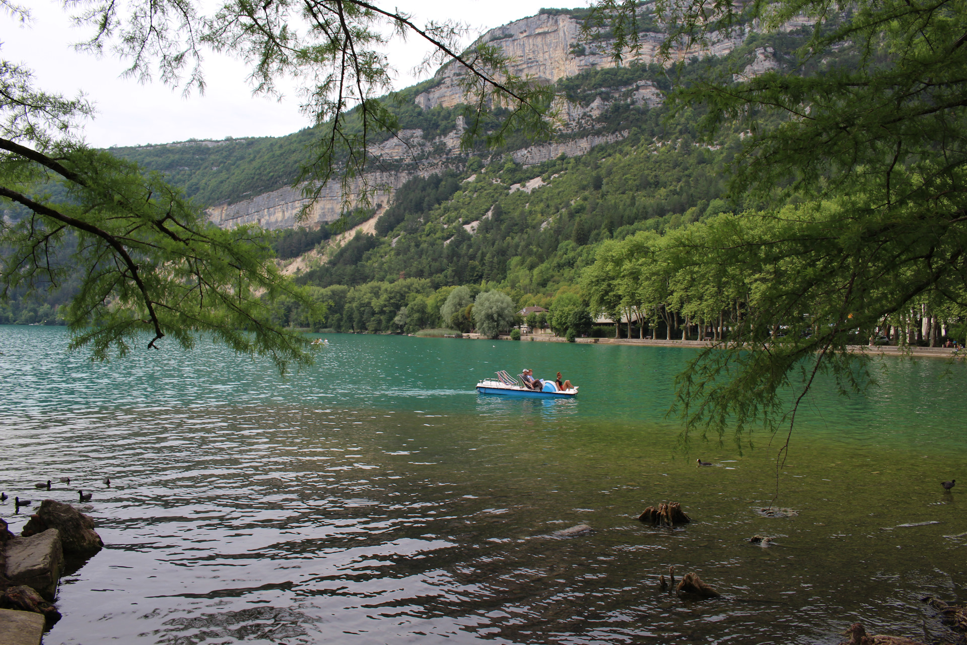 Ехать в Aix-les-Bains — Экс-ле-Бан или Экс-Лесбианс как я его иногда называю — на озеро Bourget или в Annecy (Анси) на одноименное озеро как-то не хотелось. Уже бывали там сто пятьсот раз. Был вариант покупаться на озере Aiguebelette (Эгбелет), но, насколько я помню, там платный пляж, тяжело с парковкой и куча народа. Поэтому надо было ехать туда, где ни я ни они еще не были. Выбор в итоге пал на озеро Nantua (Нантюа) в 93 км на северо-восток от Лиона.