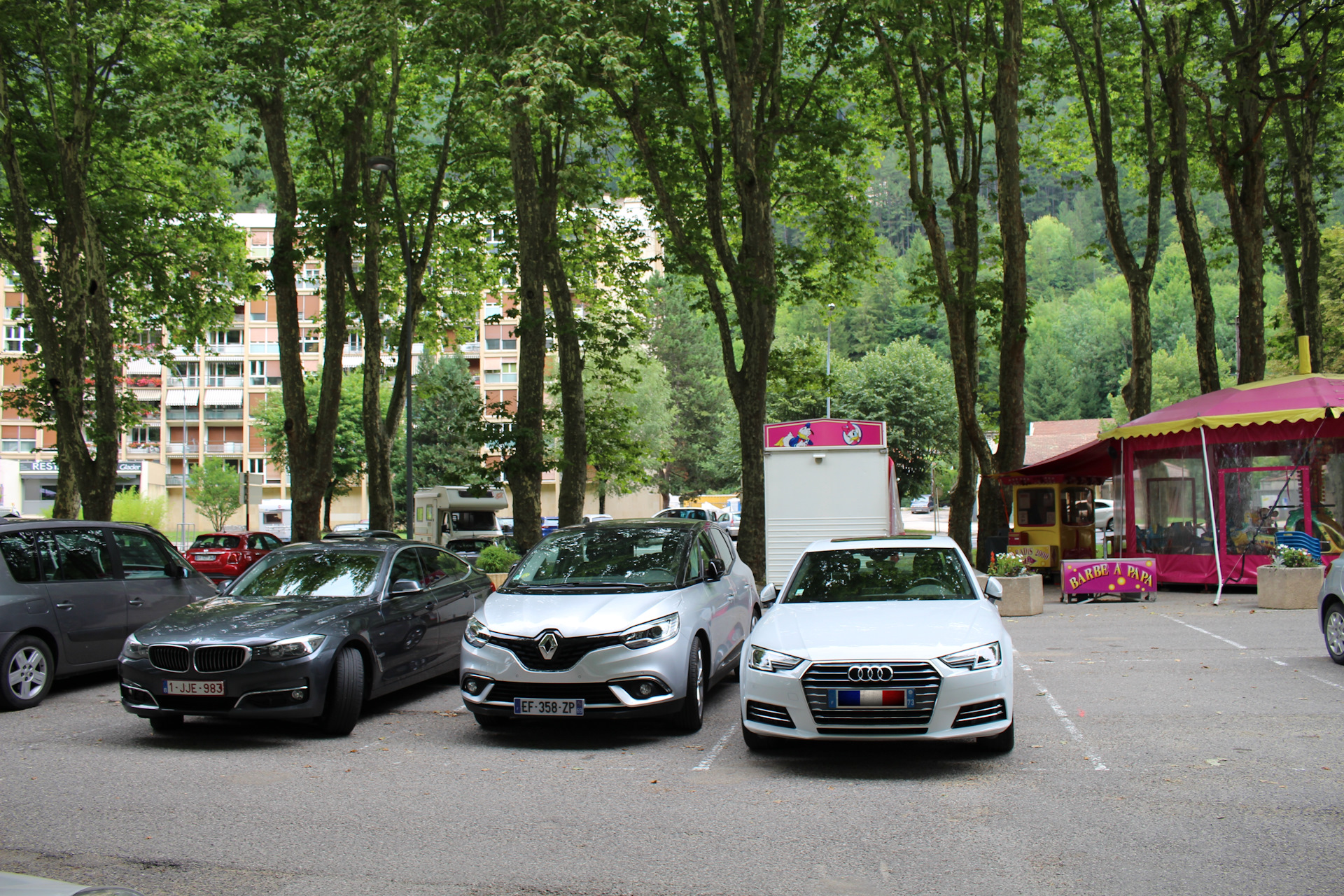 Ехали по платной автомагистрали примерно час пятнадцать. Дорожный сбор составил €8.20. Последний отрезок довольно живописный – горы, леса. Дорога вполне приятная. Но надо внимательно следить за предупреждающими о радарах знаках. Если кто-нибудь надумает туда съездить, вот месторасположение хорошей бесплатной парковки:
