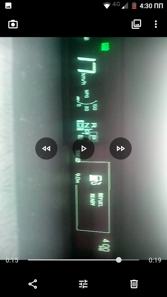 Счётчик запаса хода на EV. Индикатор батареи переходит в режим HV при остатке хода на электро менее 1.5 км.