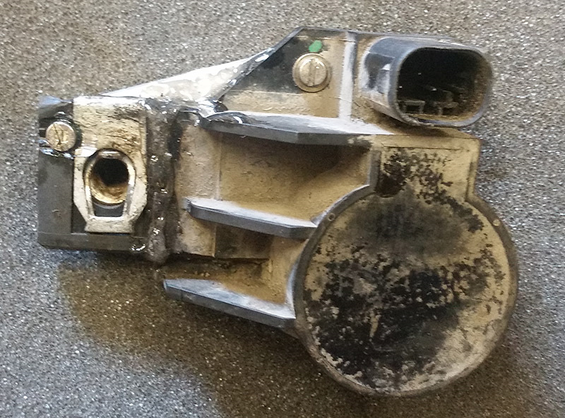 Да, единый корпус. Понятно, что можно склеить, но это явно не будет надежно. Паять пластик тоже не вариант, сам датчик может пострадать. Надо пластинку металлическую какую-нить привернуть, только надо подумать как так сделать, чтоб потомсам датчик можно было установить не нарушив регулировки.