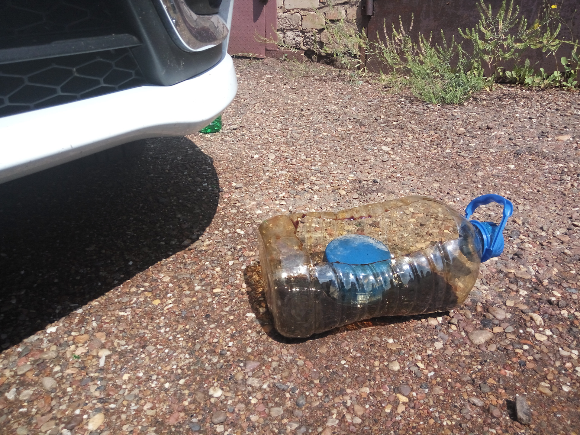 Масло менял без подъемника/эстакады, защиты картера у меня нет, только пыльник, поэтому доступ к пробке хороший. Слил отработку в разрезанную 5 литровую бутыль, но ее немного не хватило. Старый фильтр пришлось откручивать съемником, похожим на большой трубный ключ, новый фильтр вкрутил от руки, без сумасшедших моментов затяжки, не в космос же на ней лететь!