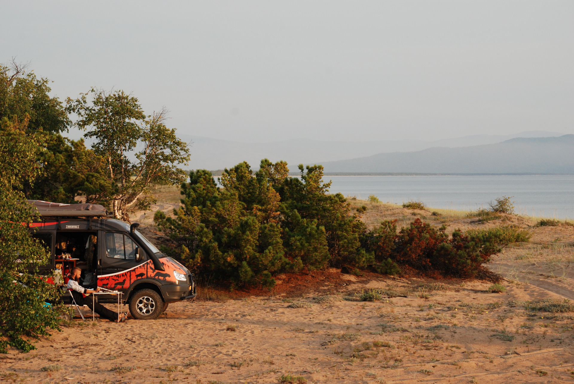 Сейчас мне кажется, что мы с мужем ведём вполне обычную жизнь. Да, почти каждый день новые дороги, новое место ночёвки, новые люди. Но это больше меня не пугает. Привычным стало всё время выстраивать новые цепочки в голове. Нет улицы, по которой ходишь изо дня в день, нет излюбленного продуктового магазина. Даже о самом простом надо думать. И оказалось, очень приятно постоянно находиться с бодрствующим сознанием. И, как мне кажется, самое главное, что я поняла в нашем путешествии — что можно жить ИНАЧЕ. Не хуже или лучше, а просто по-другому. И быть счастливым просто от того, что живёшь. Философские размышления, конечно, навеяло место написания этих строк — пустынный пляж, закатное солнце, Байкал.)