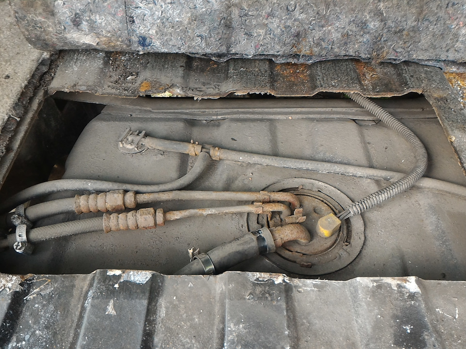 Ехал домой и тут раз, машинка заглохла, подумал что опять бензонасос накрылся, но потом людей, которые шли мимо, попросил послушать, моторчик гудит. Датчик топлива показывает больше чем полбака, как оказалось накрылся сам показометр в баке, заказал новый в сборе насос и поставил. Лючек вырезал когда меняли раму, если быть точнее, то когда раму уже поставили, там такие млин работяги, не могли трубки на насосе открутить, обрезали и на хомуты поставили, я открутил спокойно, двумя ключами. Новый насос залил мовилем, а резьбу на трубках и сами трубки замазал графиткой.