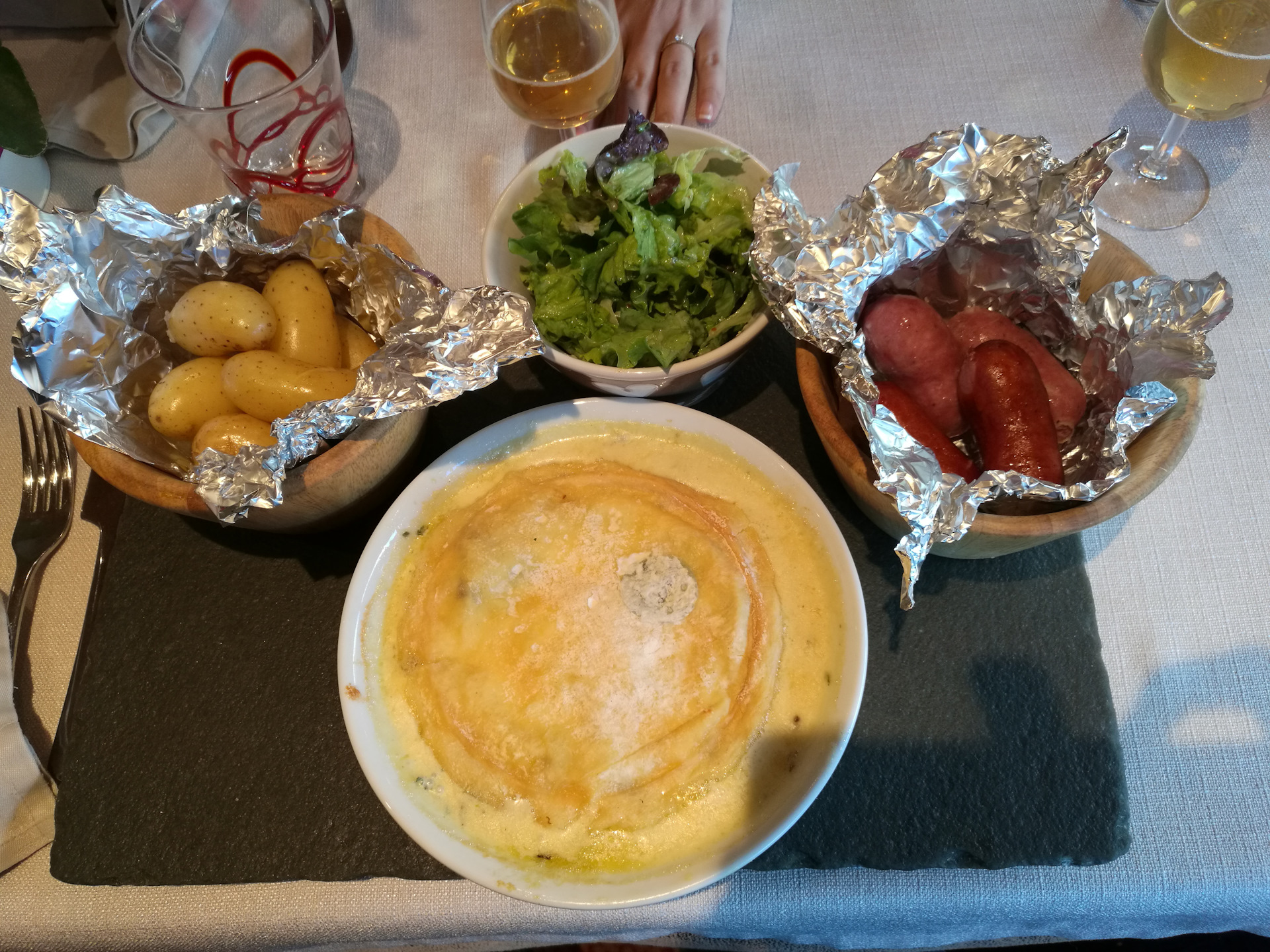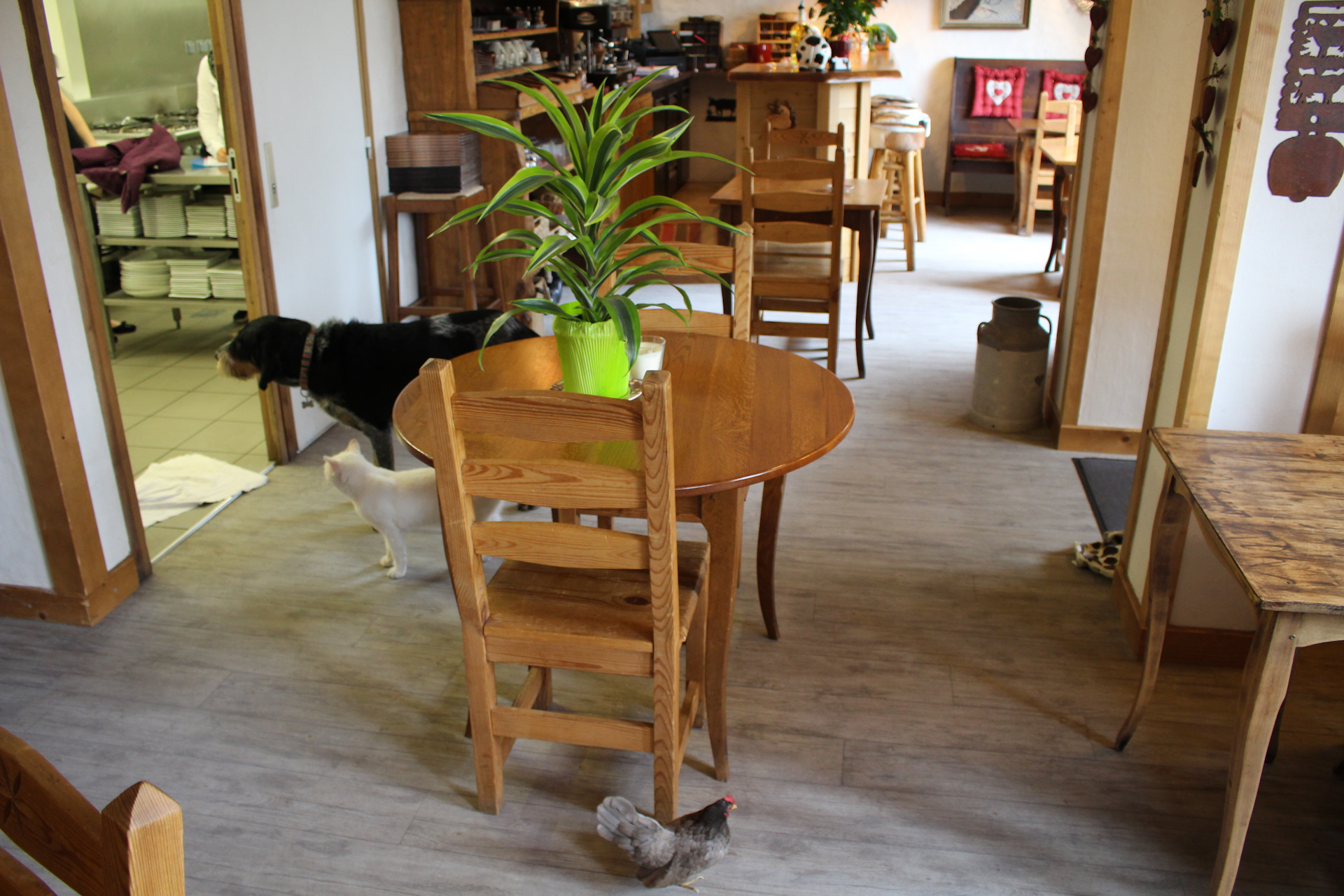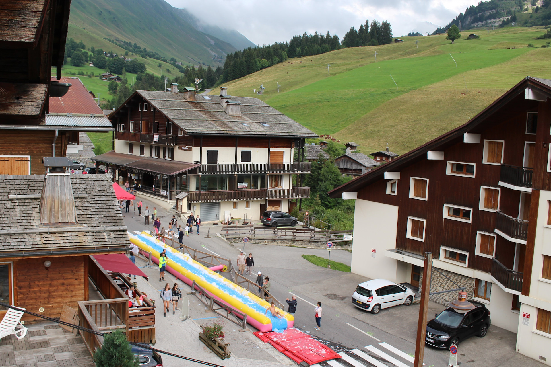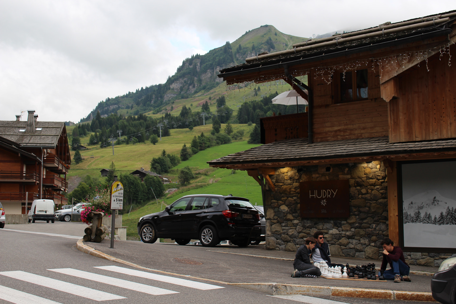 В первый же полный день пребывания пошел дождь, и находиться снаружи было как-то не комильфо (на самом деле это три слова — comme il faut). Тем более с двухмесячным ребенком. Кстати, дочка молодец, высота в 1300 метров никак не нарушила ее крепкий сон. Хотя было очевидно, что переваривание молока ей дается с трудом. Так что имейте ввиду, если поедете в горы с малыми детьми. Обычно они плохо переносят высоту. Во время дождя мы были либо в отеле – хозяин даже протапливал камин, либо в близлежащих ресторанах и магазинах. Между делом был практически досмотрен до конца последний сезон « House of cards » :)