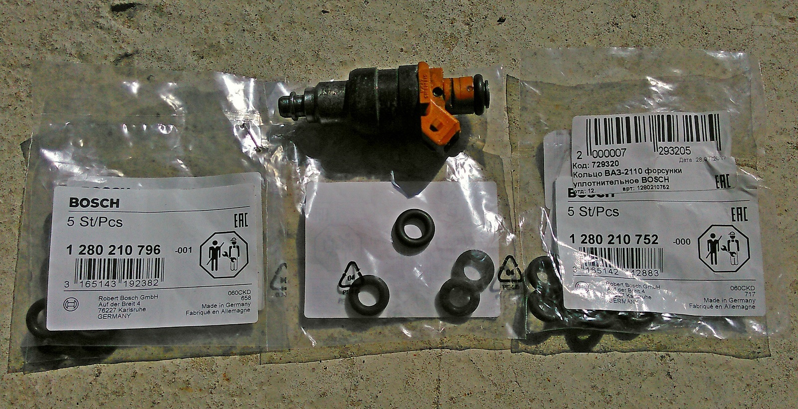 В магазине запчастей наткнулся на такиеже только с номером BOSCH 1 280 210 752 именуется как (кольцо уплотнительное форсунки ВАЗ-2110) цена 40 руб. шт., в упаковке также 5 шт. Купил ради интереса, дабы знать на крайней случай подходят или нет.